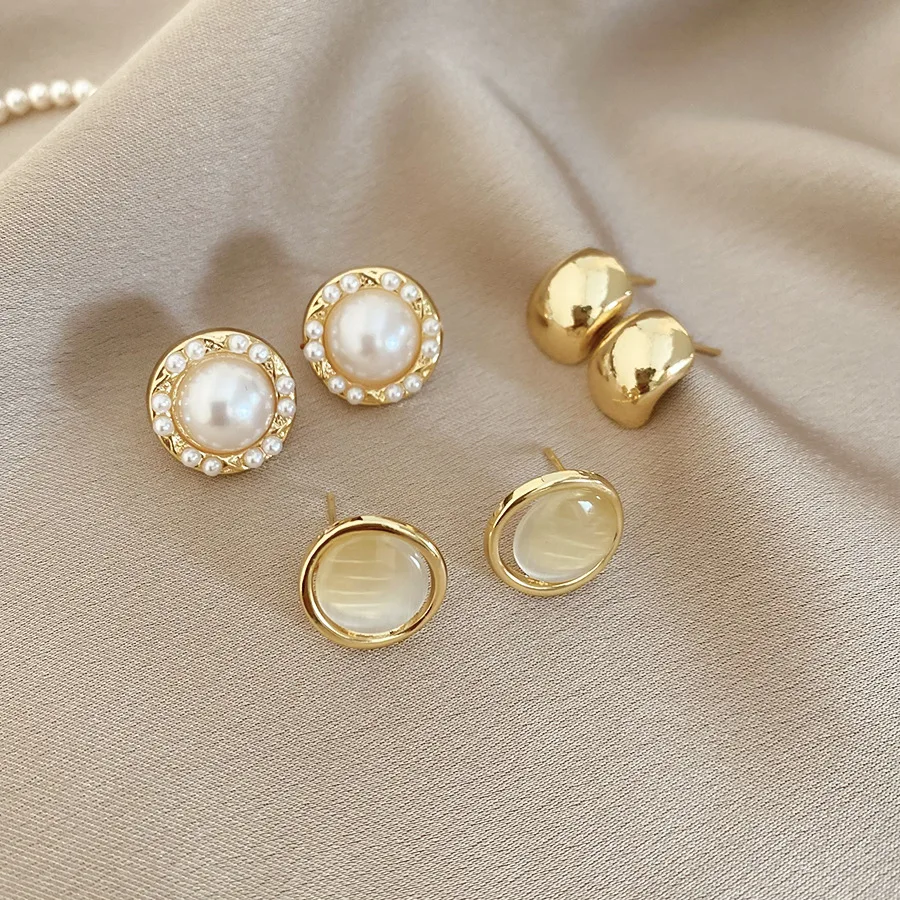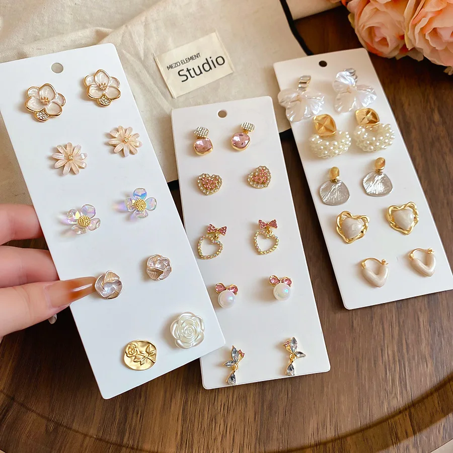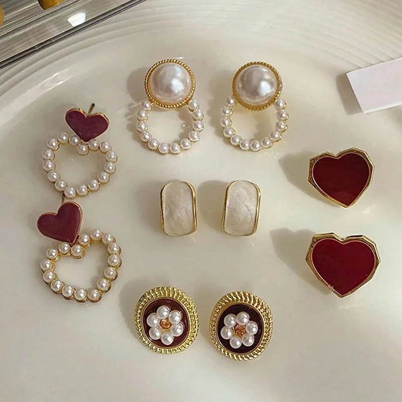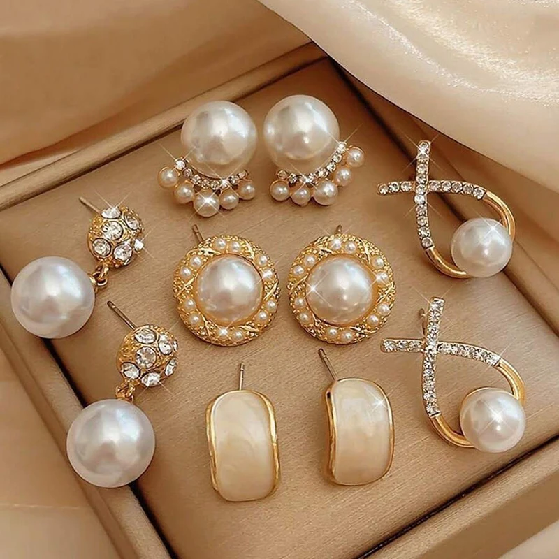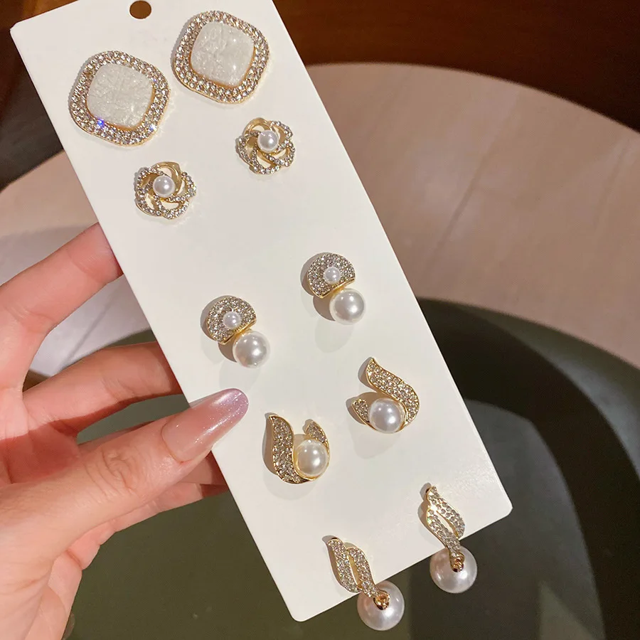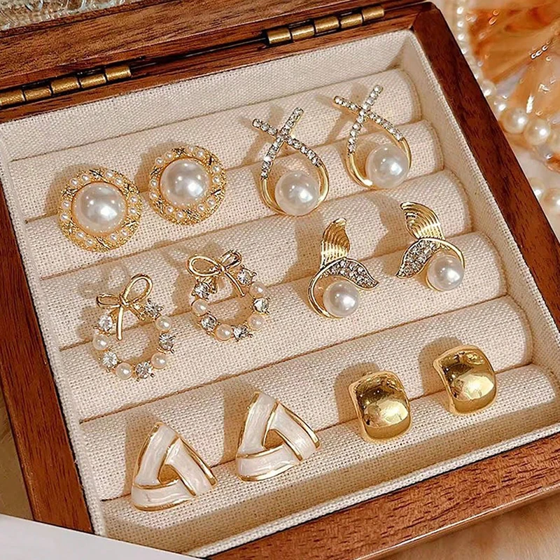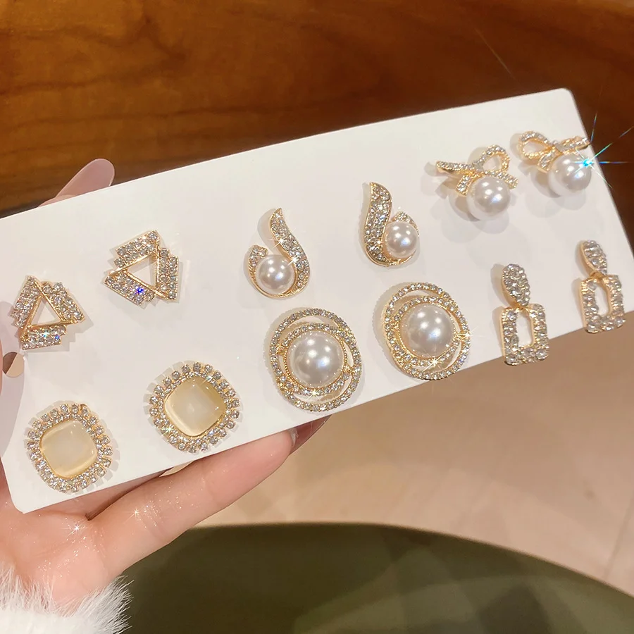6/10/12개 시뮬레이션 진주 라운드 스퀘어 스터드 귀걸이 여성용 데일리 주얼리 세트