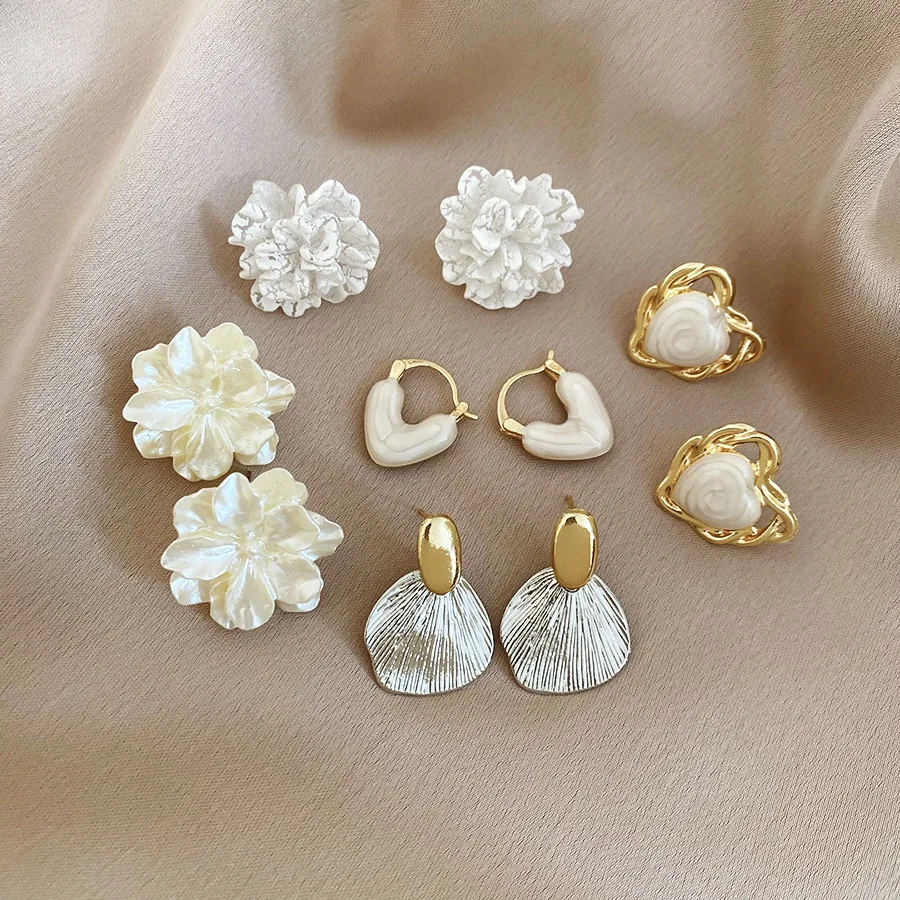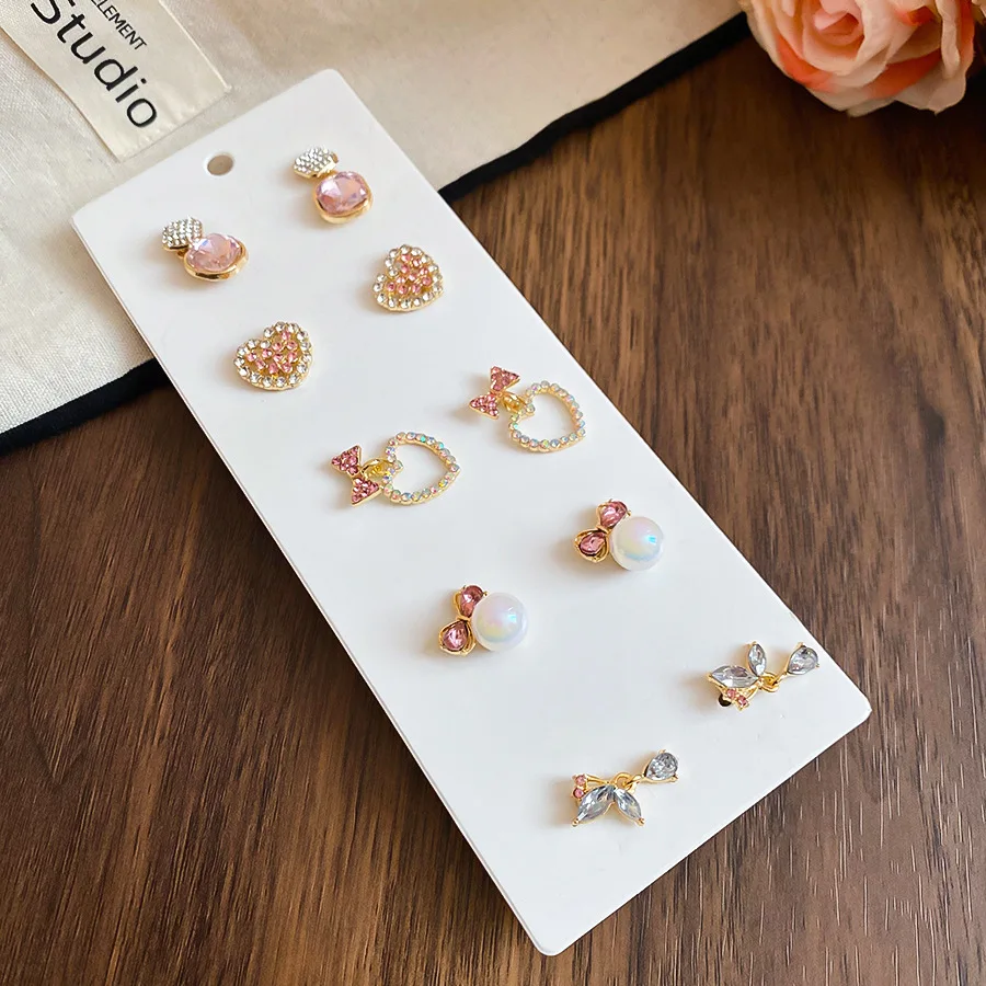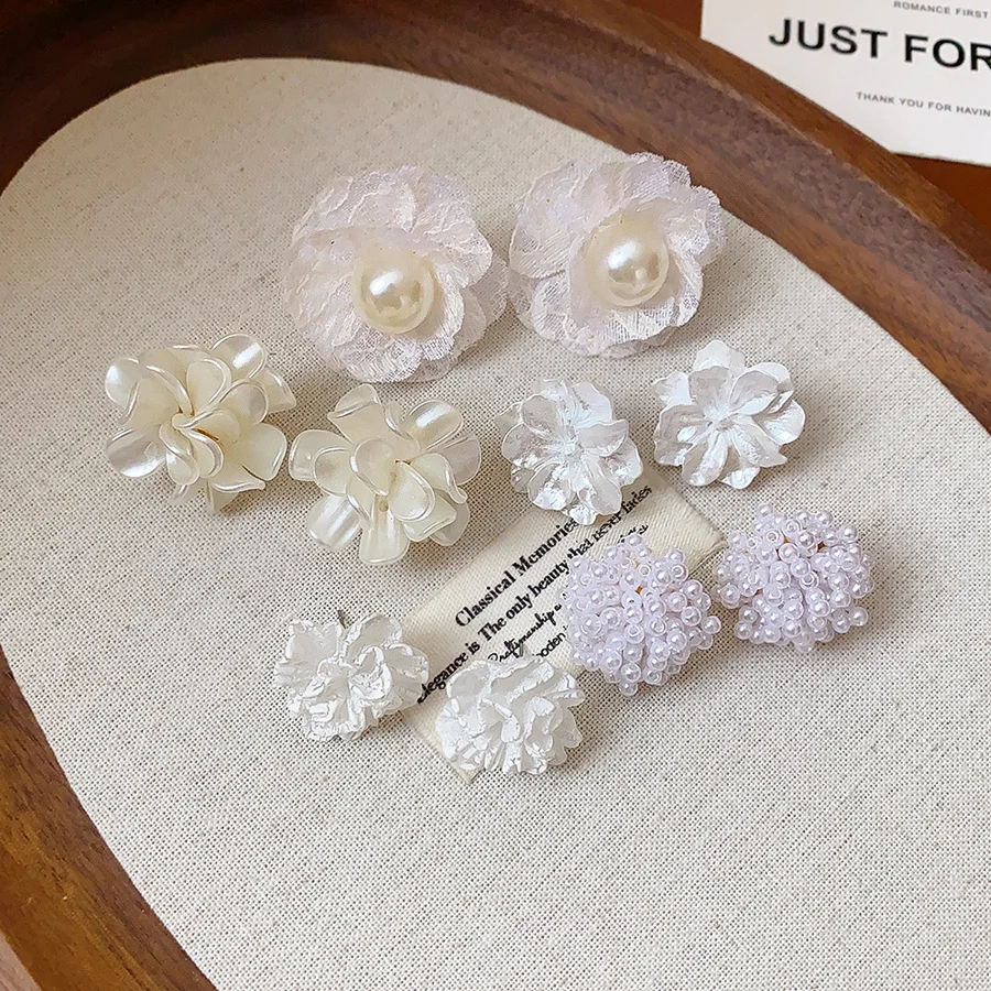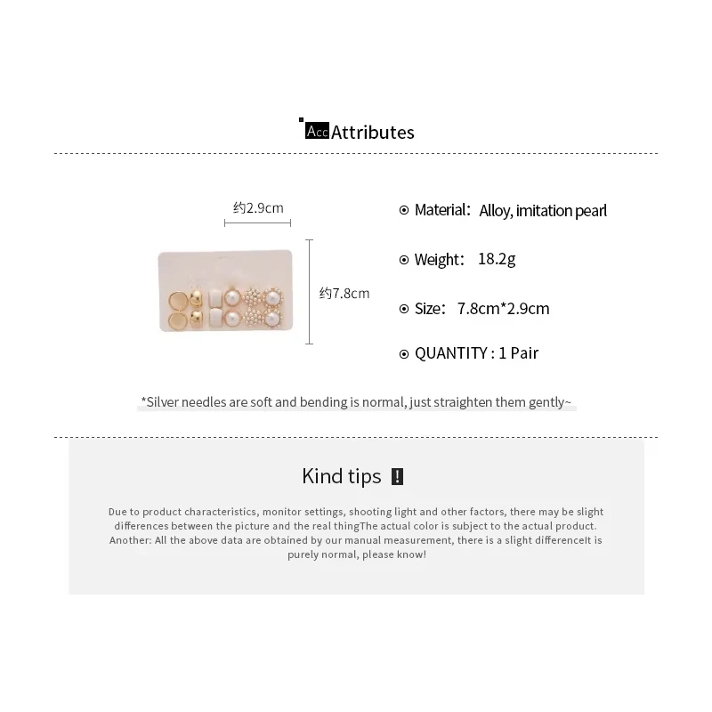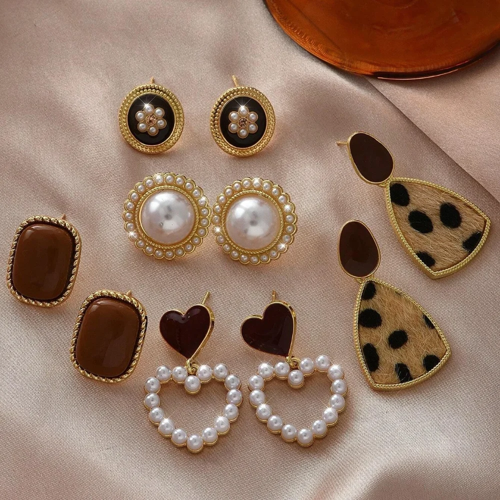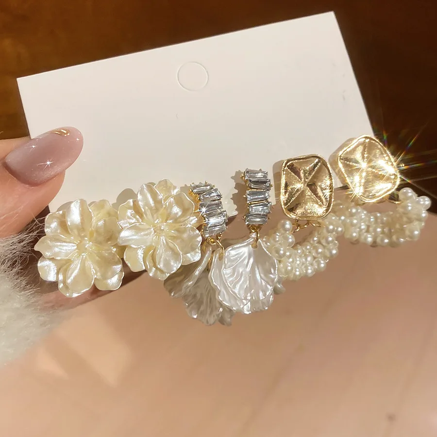 6/10/12개 시뮬레이션 진주 라운드 스퀘어 스터드 귀걸이 여성용 데일리 주얼리 세트