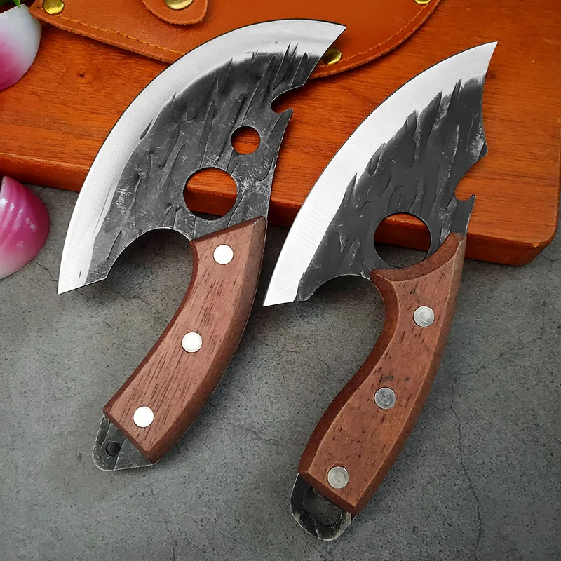 다용도 단조 주방 칼, 스테인리스 스틸 고기 도마, 뼈 제거 칼 (병따개 겸용), 칼집 포함