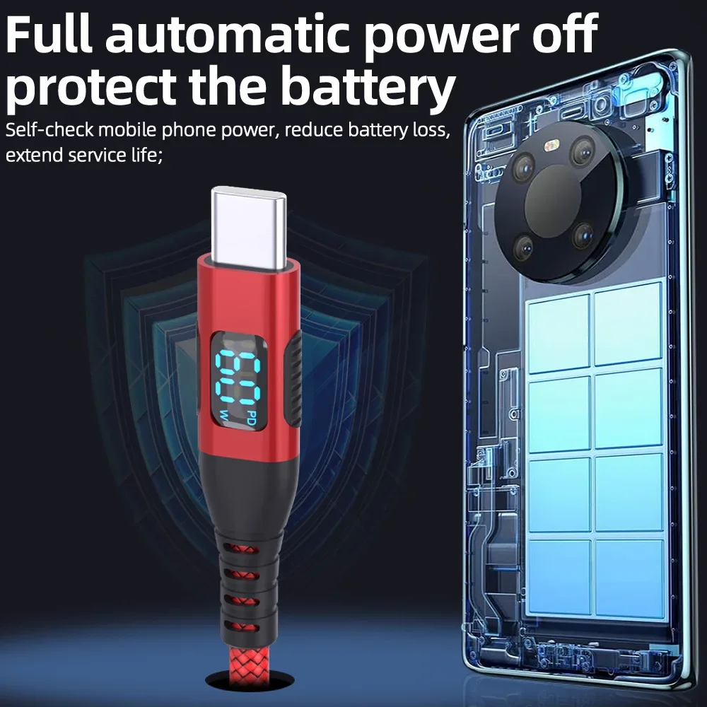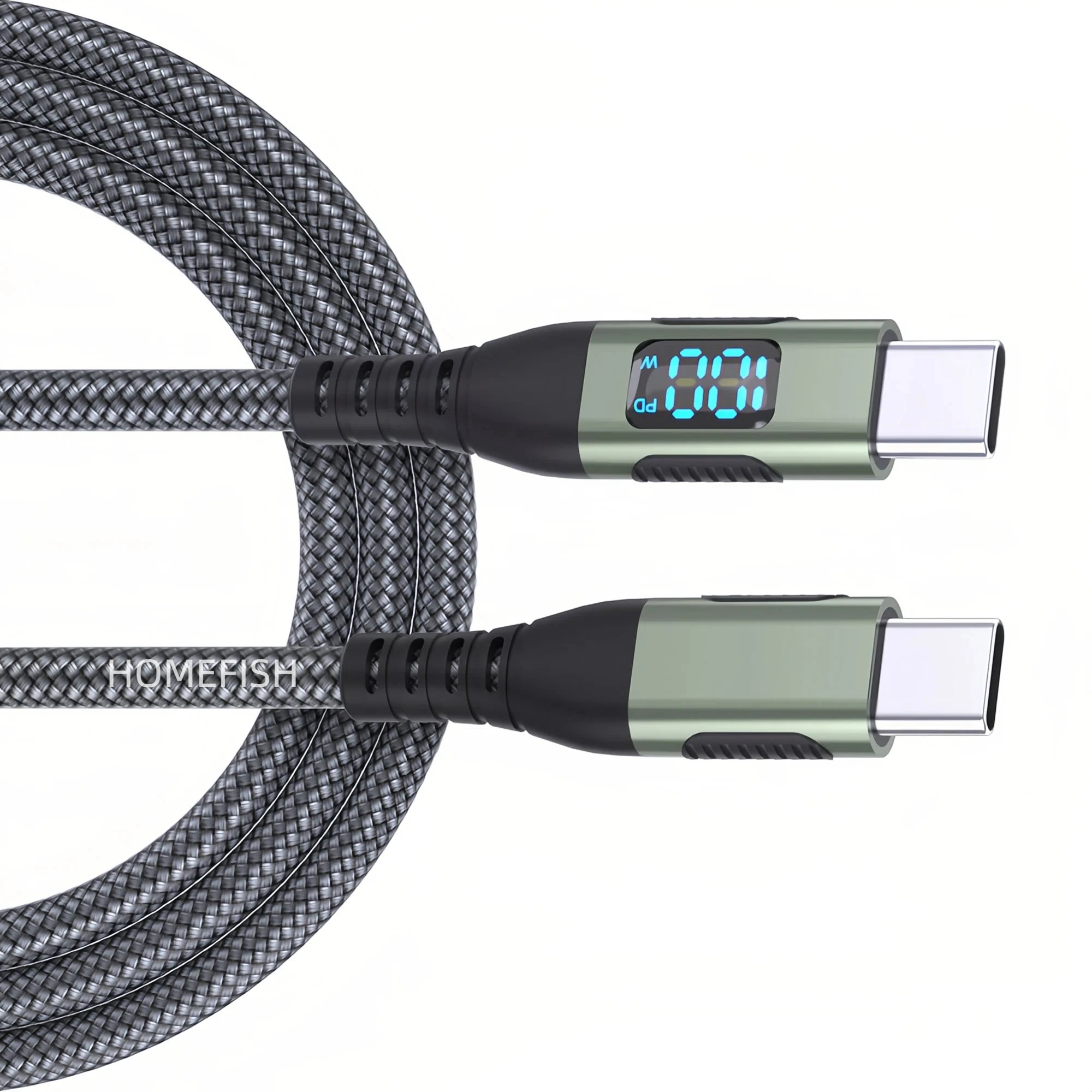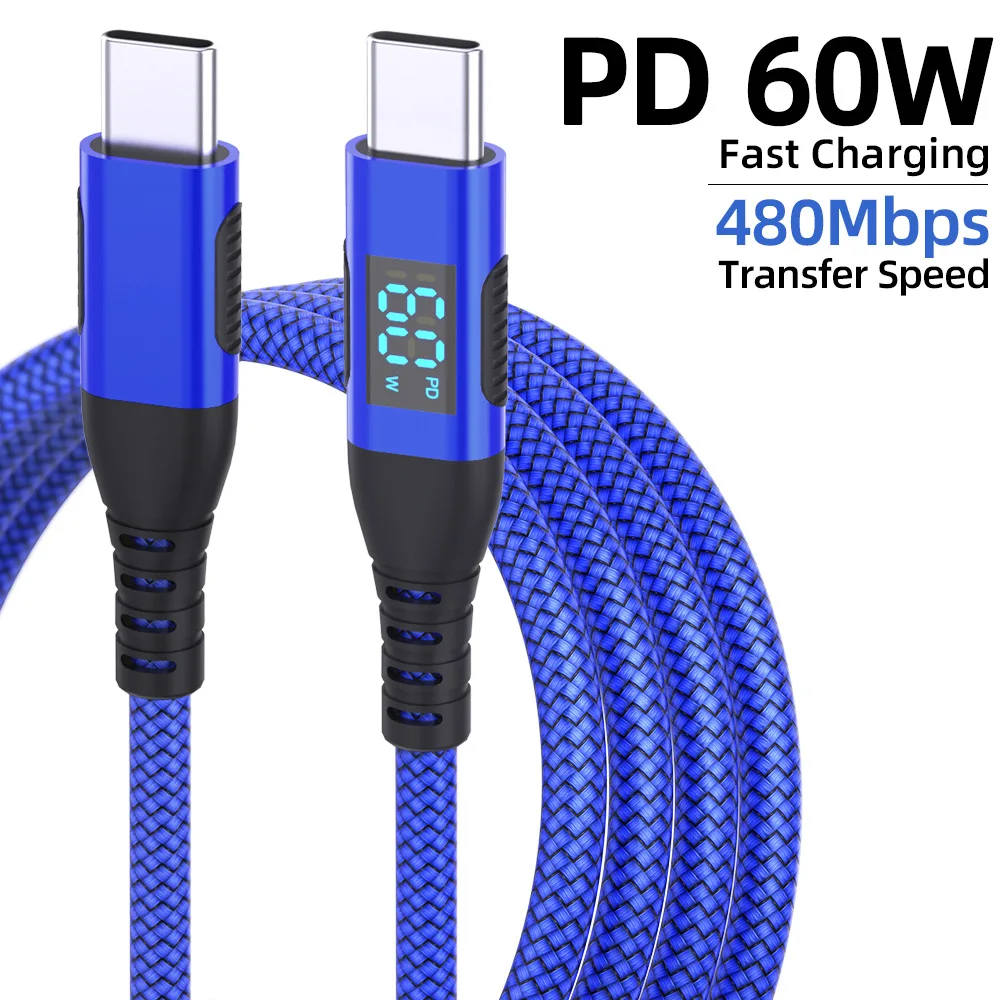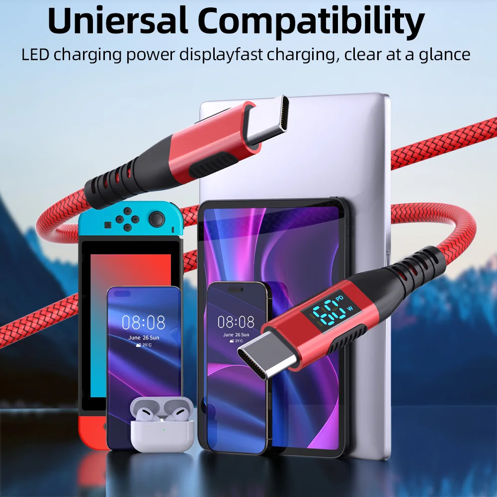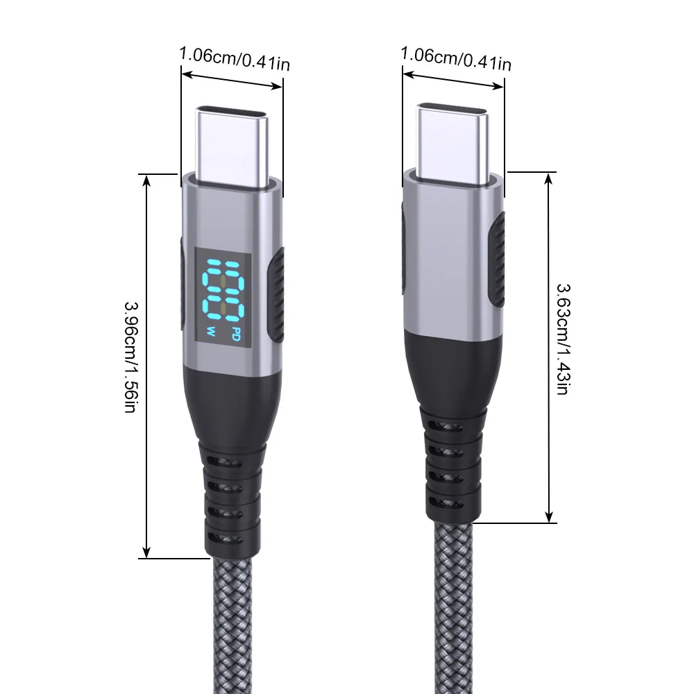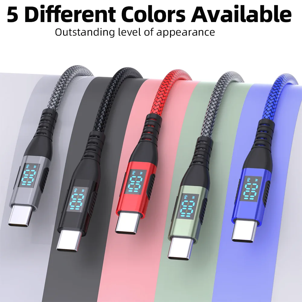 LED 디스플레이가 포함된 PD 100W USB-C - USB-C 케이블 1개(색상과 길이 선택)