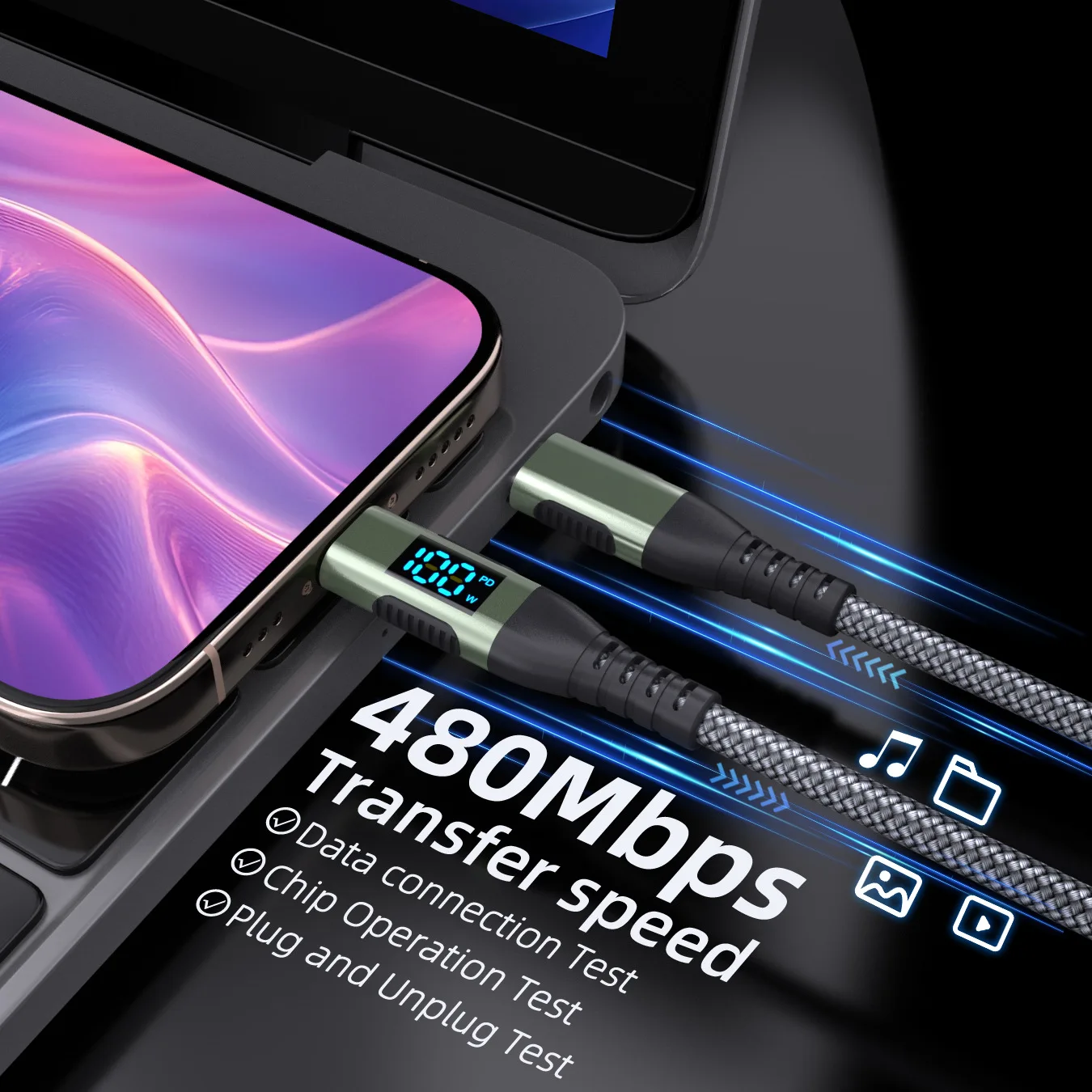 📶 480Mbps 고속 데이터 전송사진, 동영상, 파일을 최대 480Mbps 속도로 기기 간 동기화하세요. 느린 전송을 더 이상 기다릴 필요가 없습니다.