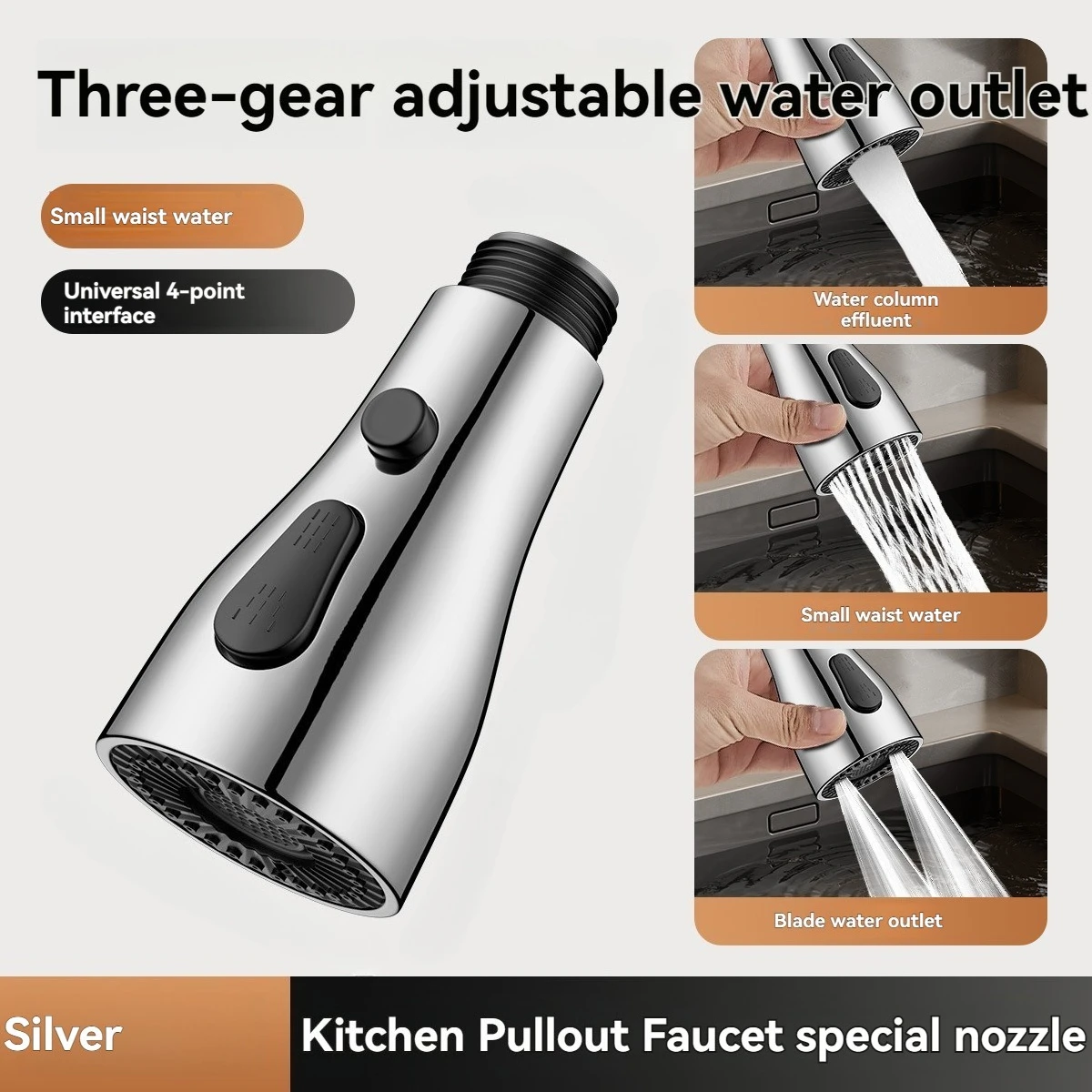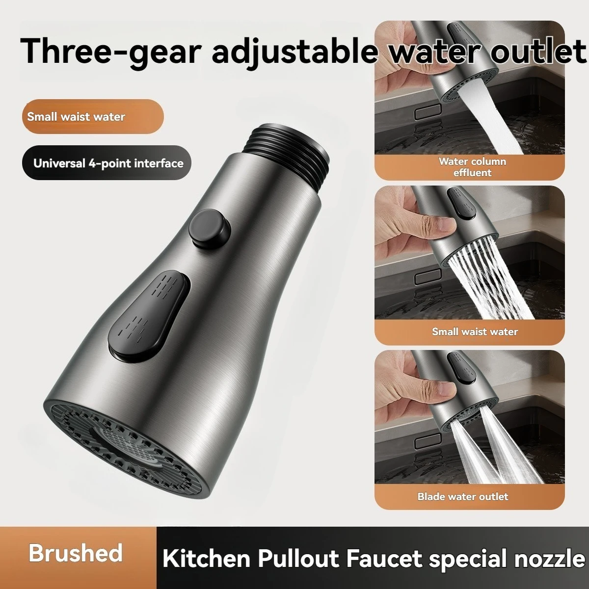 이 탭은 기존 주방 수도꼭지에 간편하게 설치할 수 있도록 설계된 새로운 범용 풀다운 교체형 스프레이 헤드입니다.