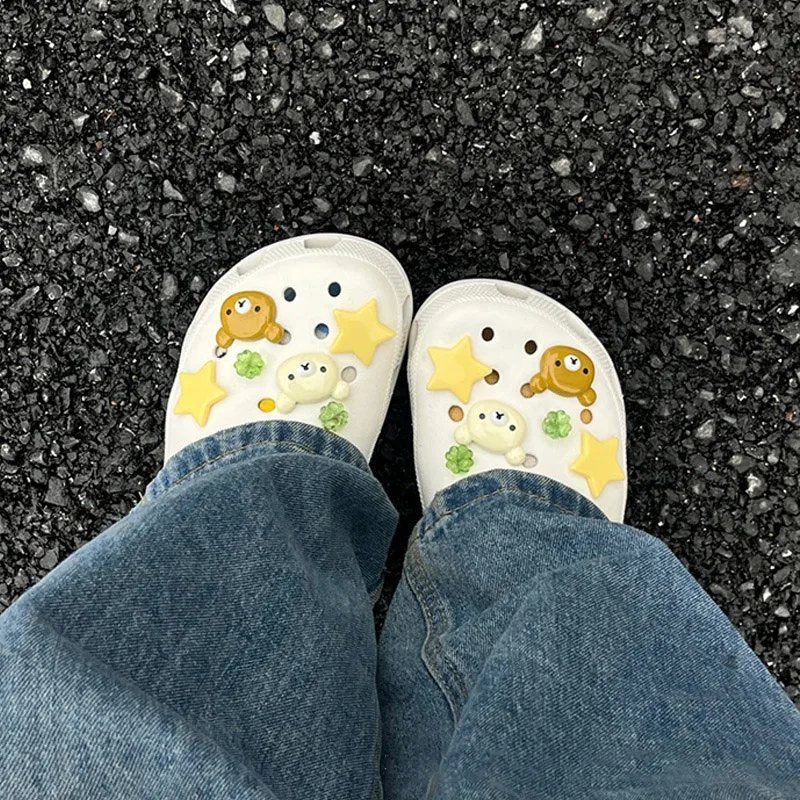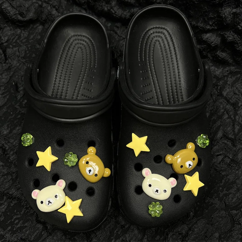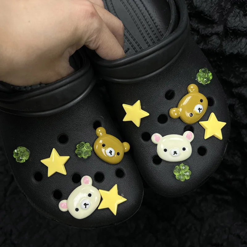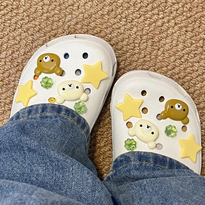 클로그 액세서리 DIY 슬라이드 샌들 슬리퍼 정원 신발 장식 버클 핀 남아 여아 선물용 귀여운 별곰 신발 장식