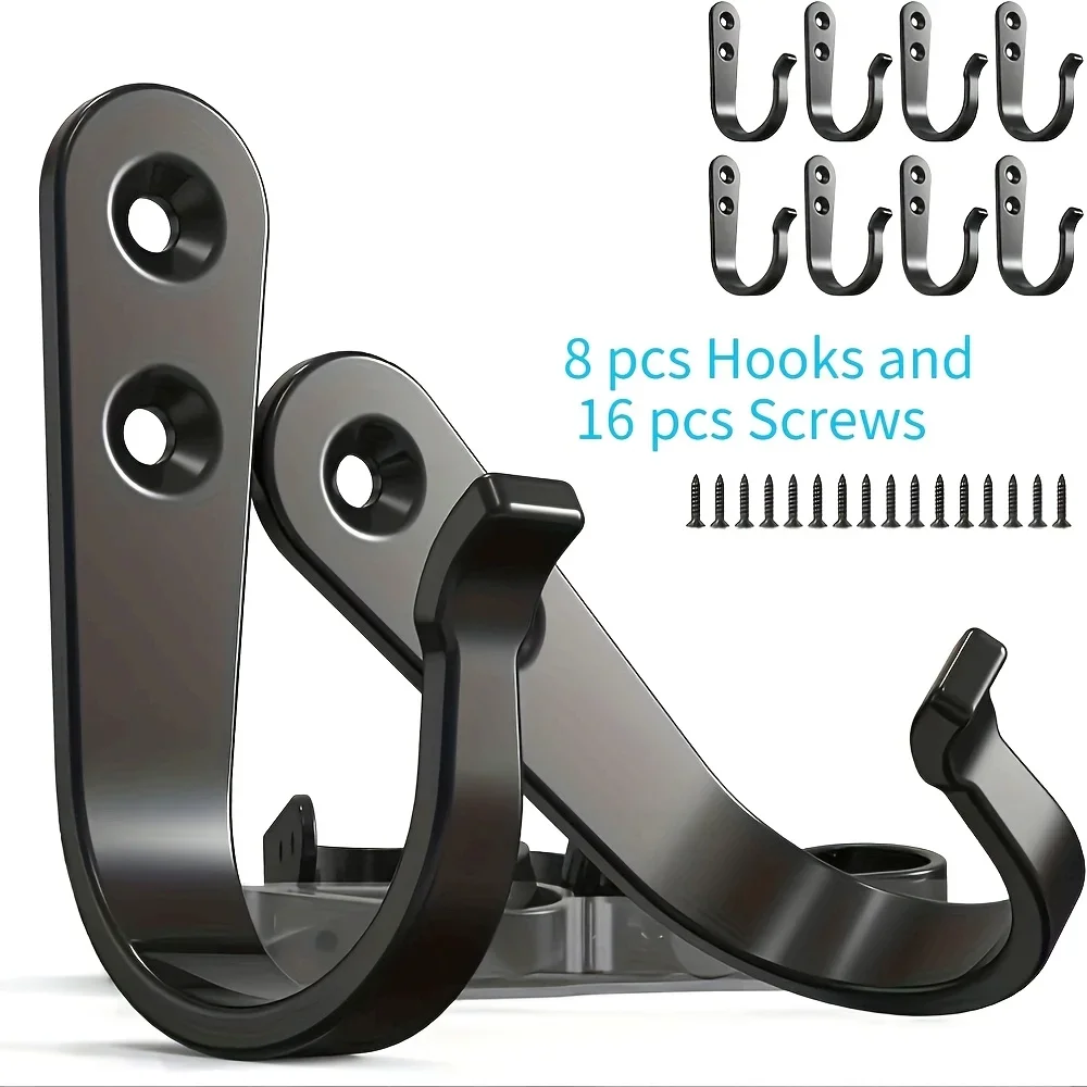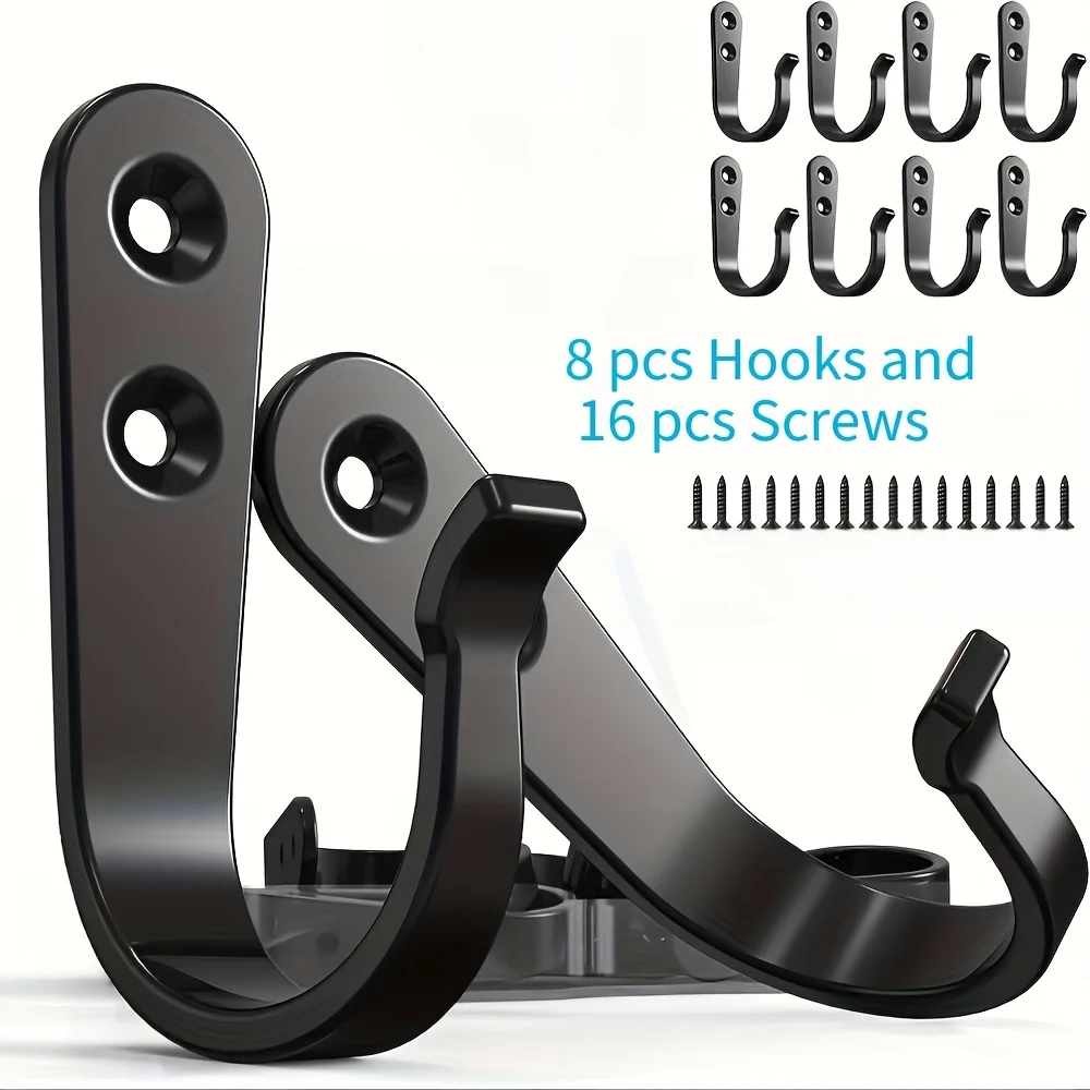 24개(후크 8개, 나사 16개) 헤비듀티 철제 코트 후크, 녹 방지 벽걸이형, 가정용 사무실 산업용, 다양한 스타일 사용 가능