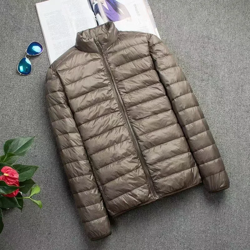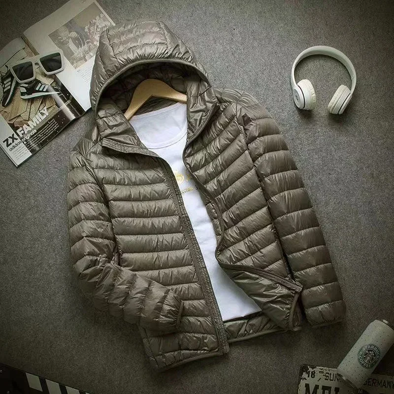 0-10 ℃ 남성용 겨울 자켓 초경량 덕다운 재킷 휴대용 후드 패딩 얇은 파카 방풍 아우터 코트 5XL