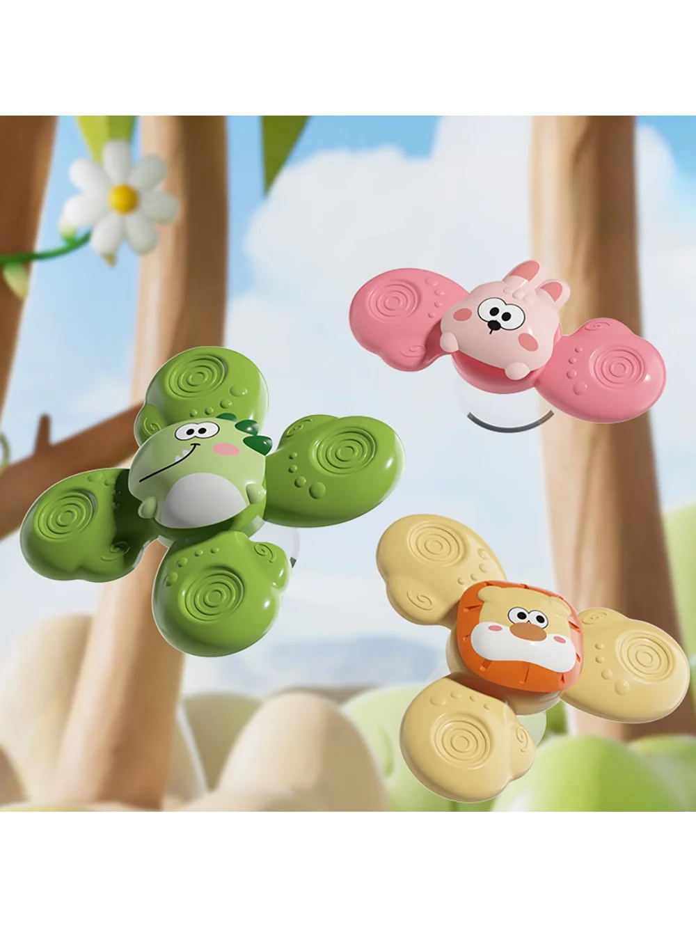 고품질의 아름다운 3피스 스피너 장난감입니다. 유모차나 표면(높은 의자/욕조)에 부착할 수 있는 옵션이 있어 조립이 간편합니다. 추천합니다👍