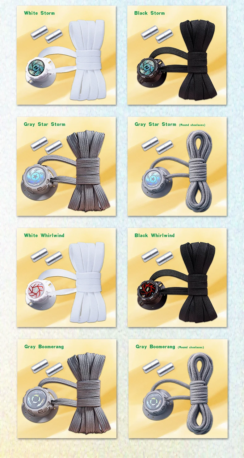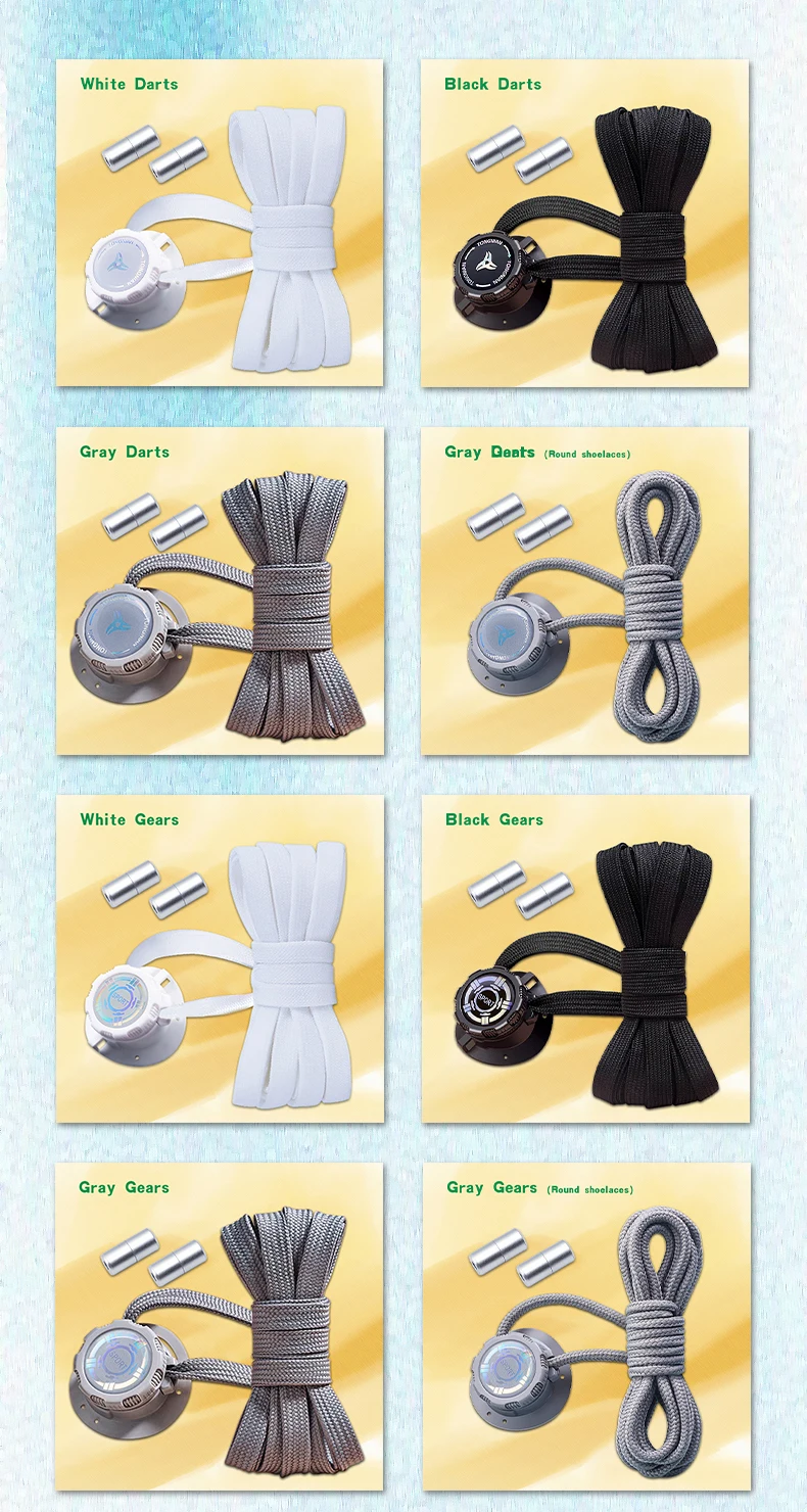 각 세트 구성품: 회전형 잠금장치 2개 + 납작 끈 1쌍 + 캡슐 잠금장치 1쌍