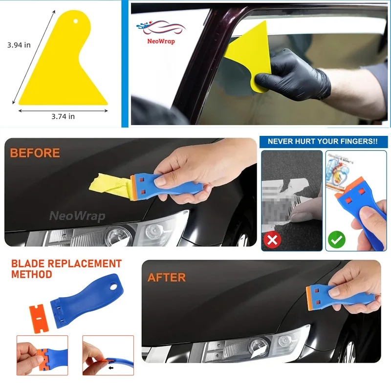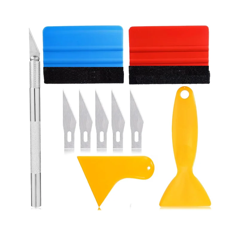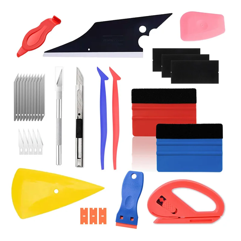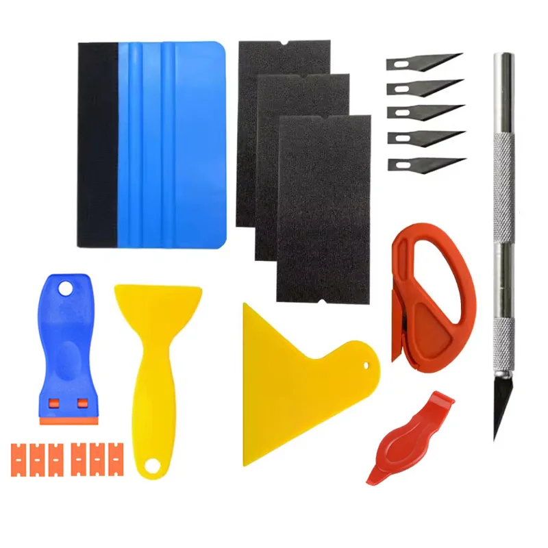 자동차 필름 포장 도구 키트 창 색조 도구 비닐 랩 펠트 스퀴지 랩 스틱 비닐 커터 유틸리티 나이프 플라스틱 스크레이퍼