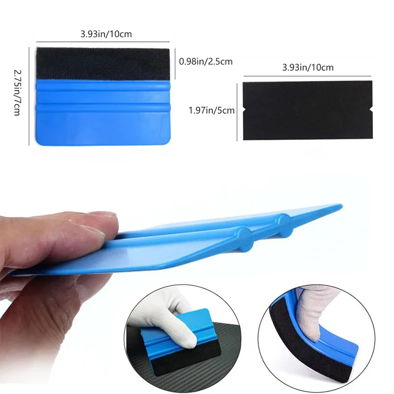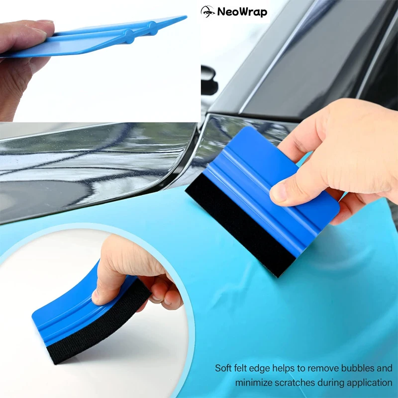 2.4인치 펠트 엣지 블루 스퀴지: 차량 랩핑, 패드 부착, 벽지 시공, 데칼 작업 시 사용하며, 부드러운 펠트 엣지로 기포를 효과적으로 제거하고 스크래치를 최소화합니다.
