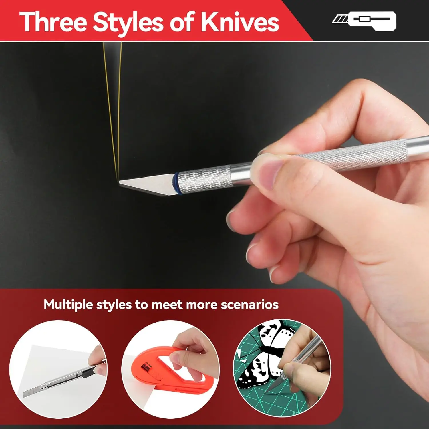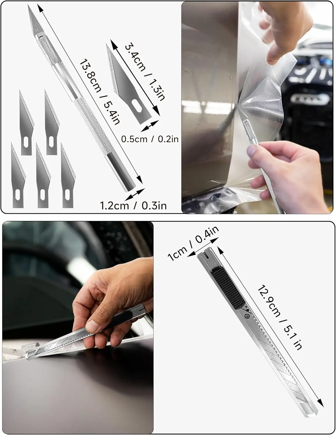 6.10개의 칼날이 있는 다용도 칼: 창문 필름, 벽지, 비닐 시트 절단에 사용하며 원하는 모양을 쉽게 자를 수 있습니다. 집, 차고, 사무실 또는 창고에서 사용하기에 적합합니다.