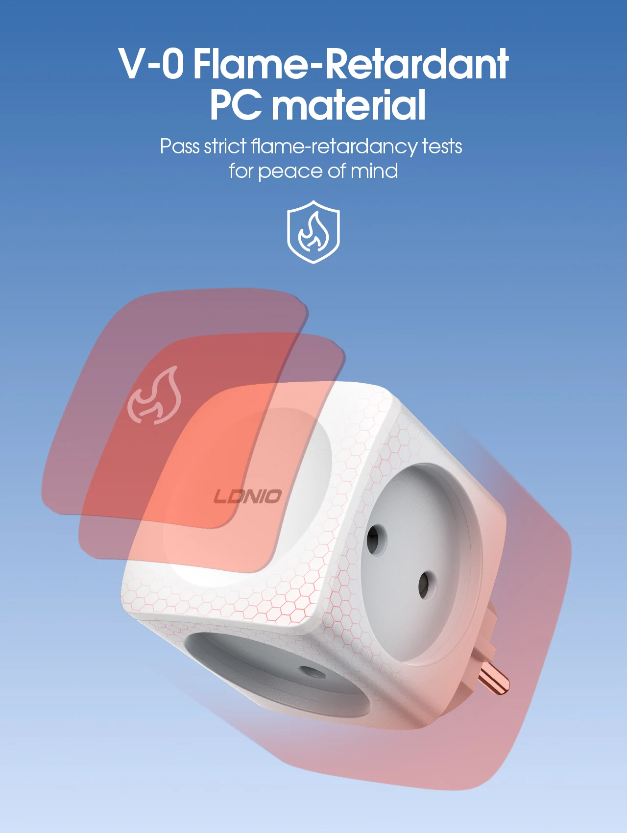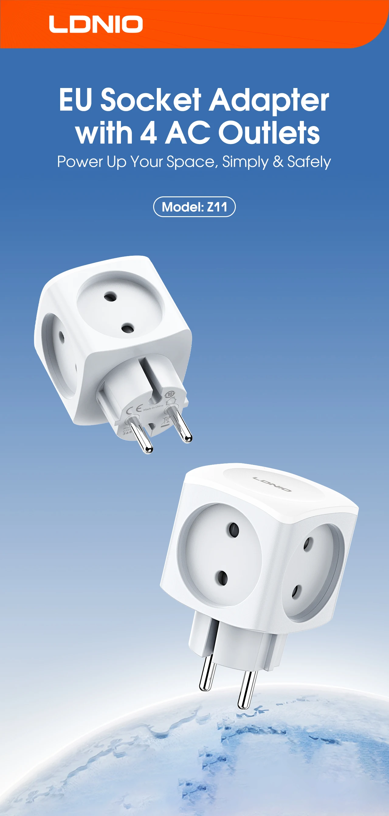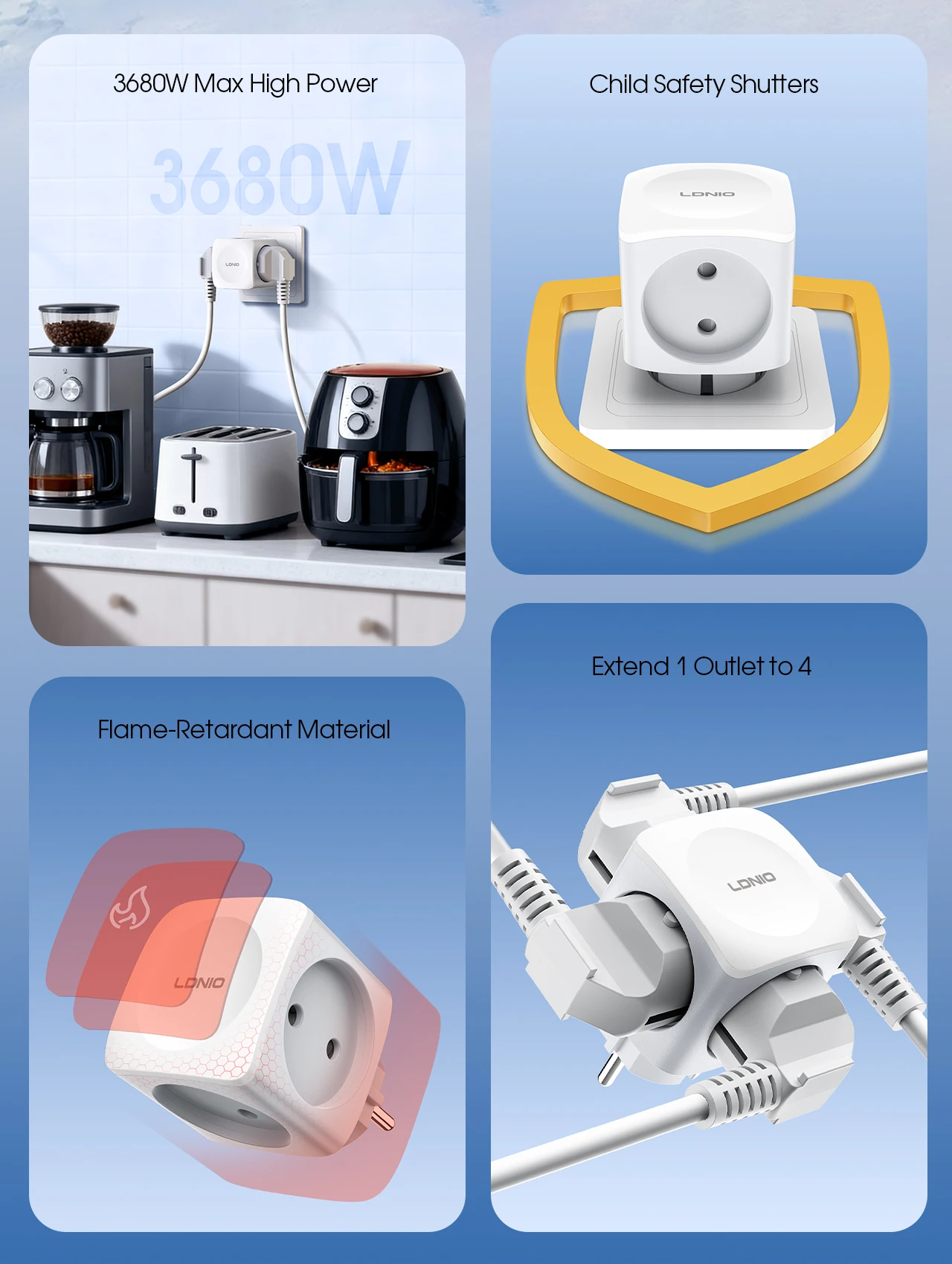 LDNIO EU 소켓 연장 어댑터 1구에서 4구로 확장, 고용량 전력 16A 2핀 플러그 전기 연장 미니 큐브 컨버터