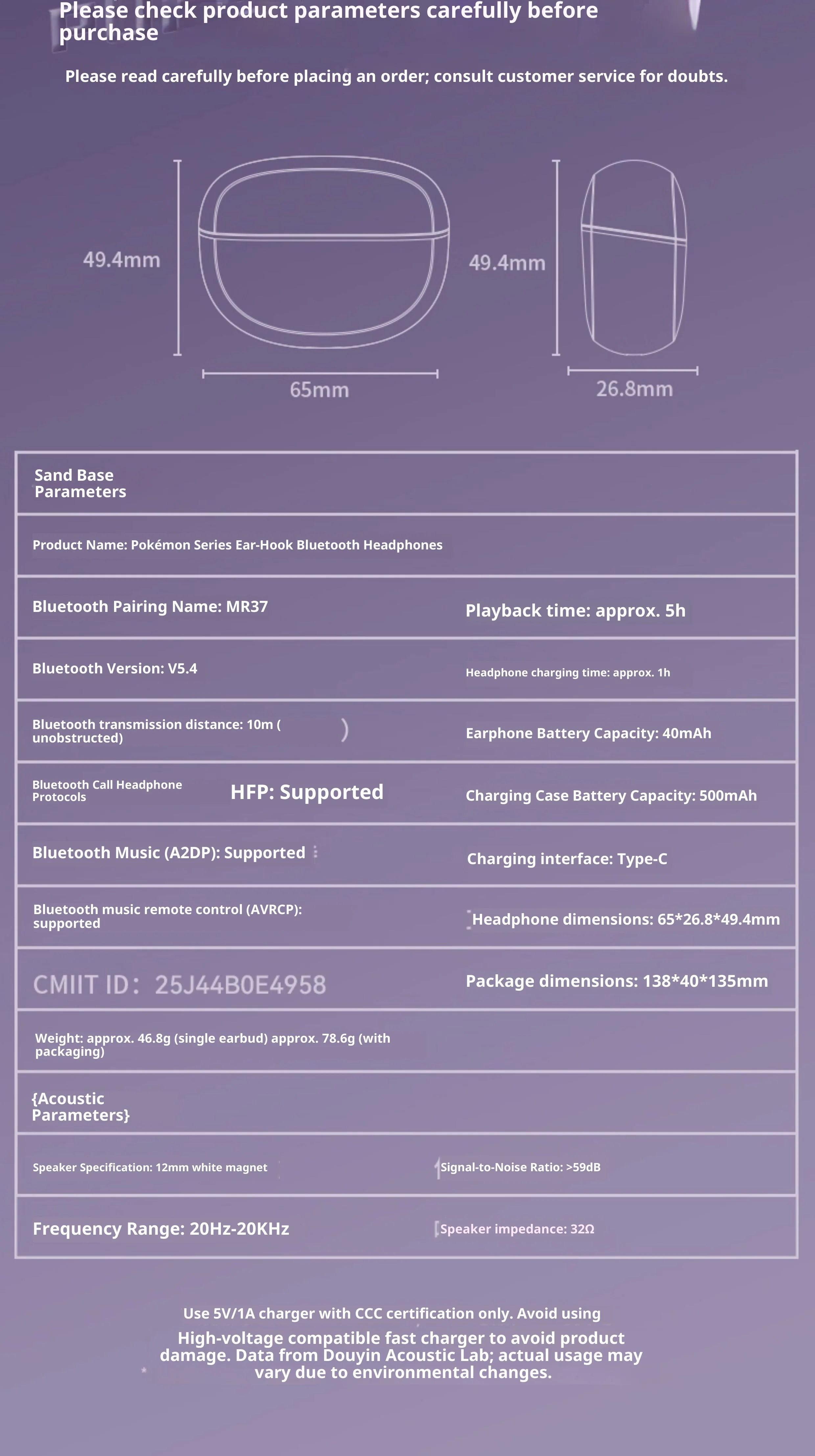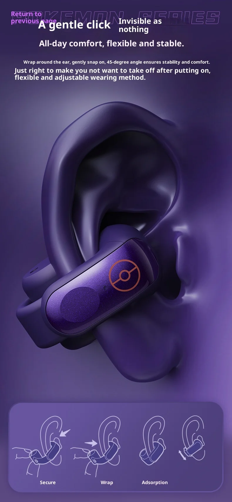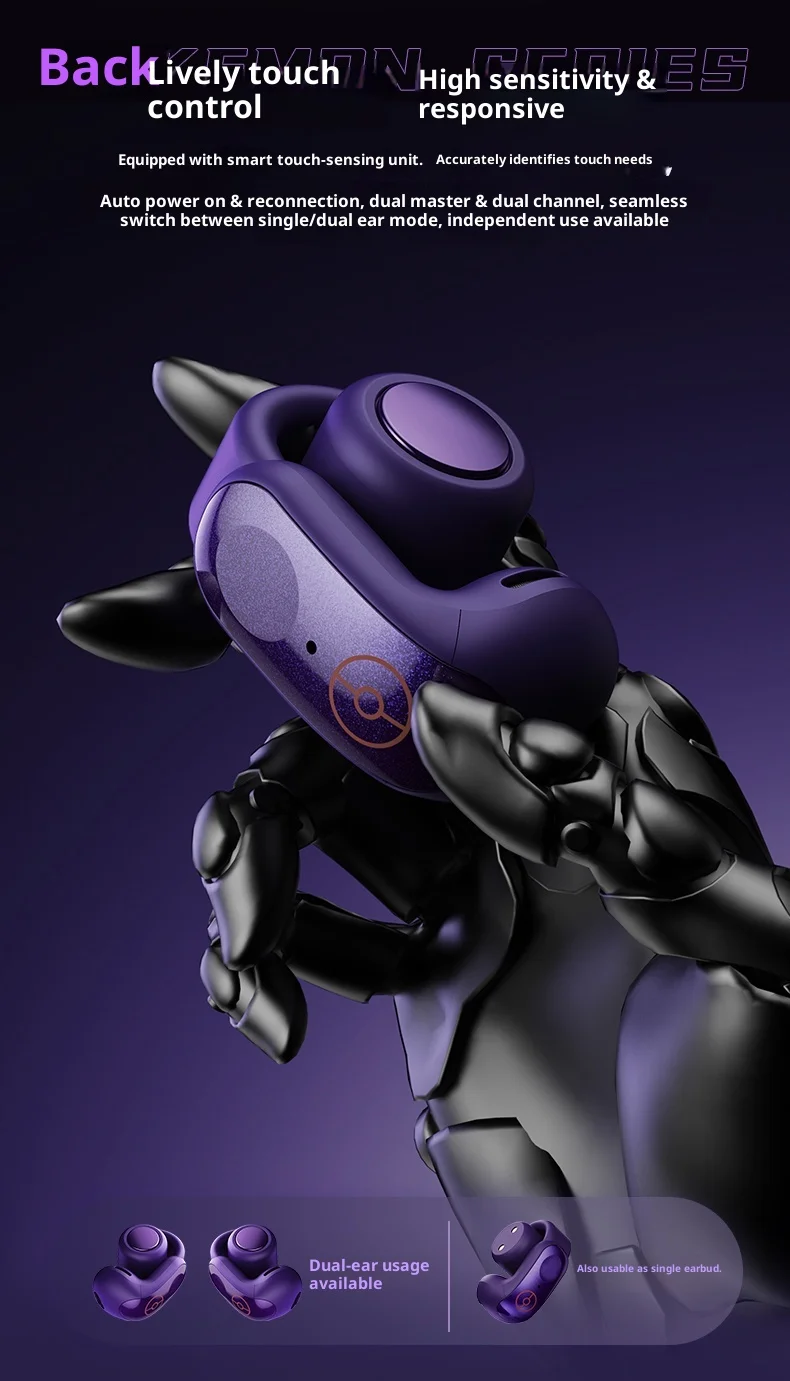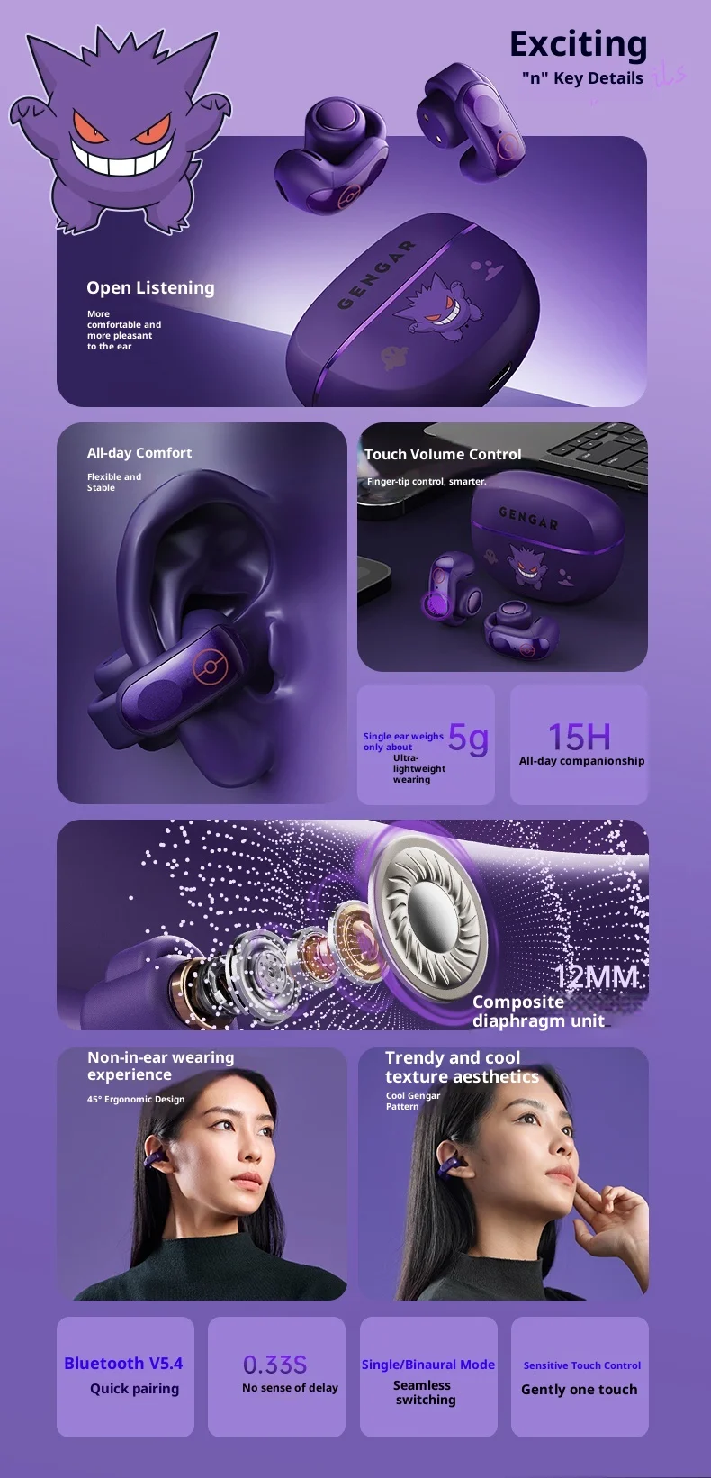 Gengar PokéMon 블루투스 헤드셋 이어 클립 Hifi 스테레오 무선 게임 스포츠 이어 버드 긴 배터리 수명 유행 애니메이션 선물