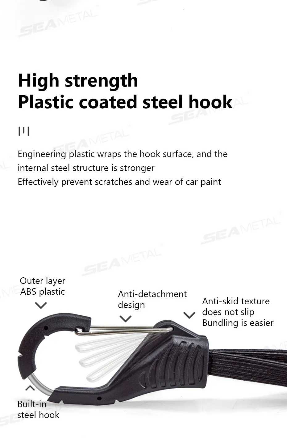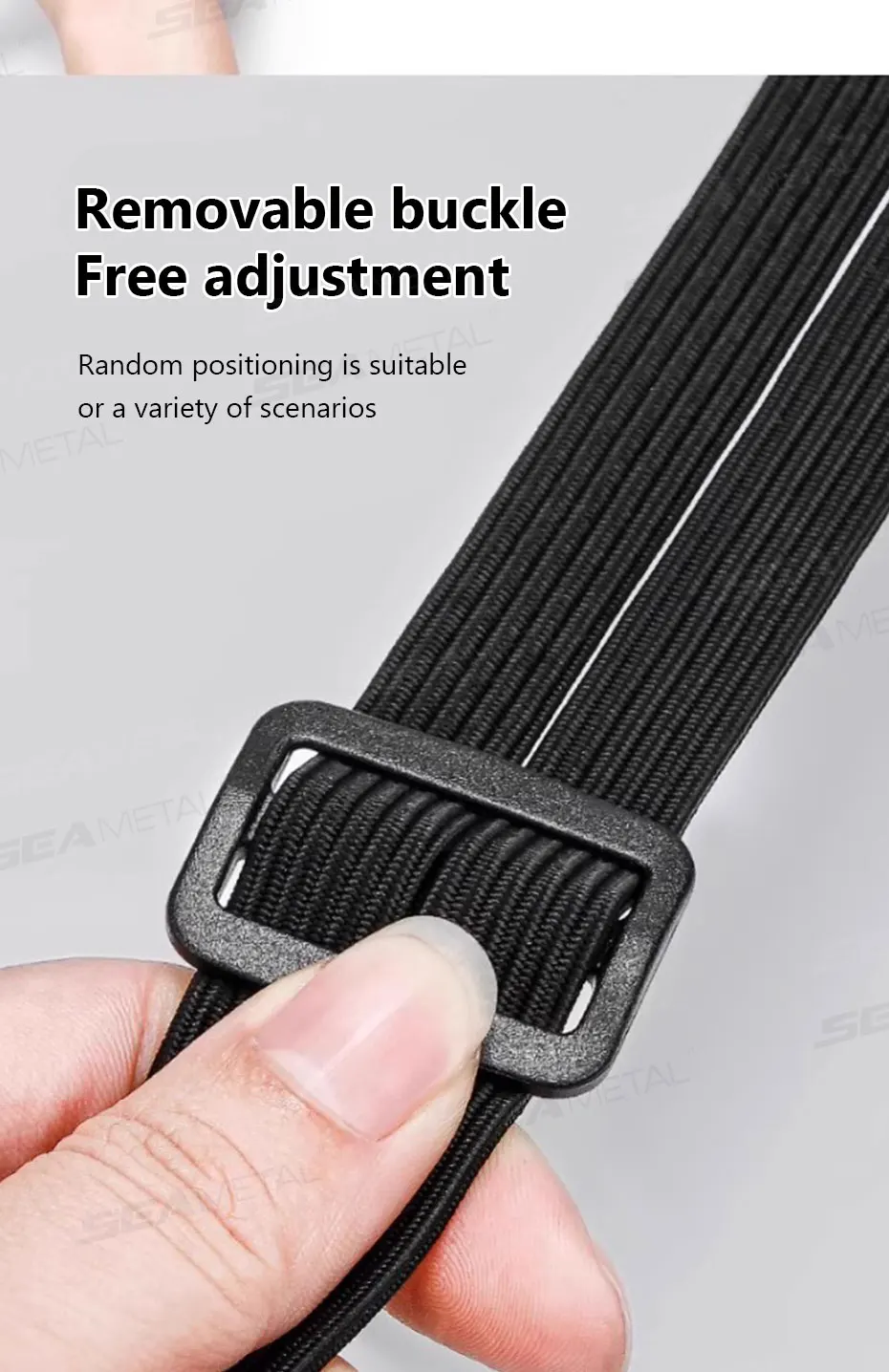 【탈착식 버클, 자유로운 조절 가능】: 인체공학적 버클에는 미끄럼 방지 패턴이 장착되어 있어 단단하고 미끄러지지 않는 물림을 보장합니다.핵심 장점은 원클릭 잠금 해제 방식에 있습니다. 백팩, 차량, 보관함, 벽 등 다양한 환경에 맞춰 무한대로 밀어서 조임 정도와 걸이 위치를 조절할 수 있습니다.진정한 자유로움을 실현하여, 걸거나 고정하는 모든 순간이 편리합니다.