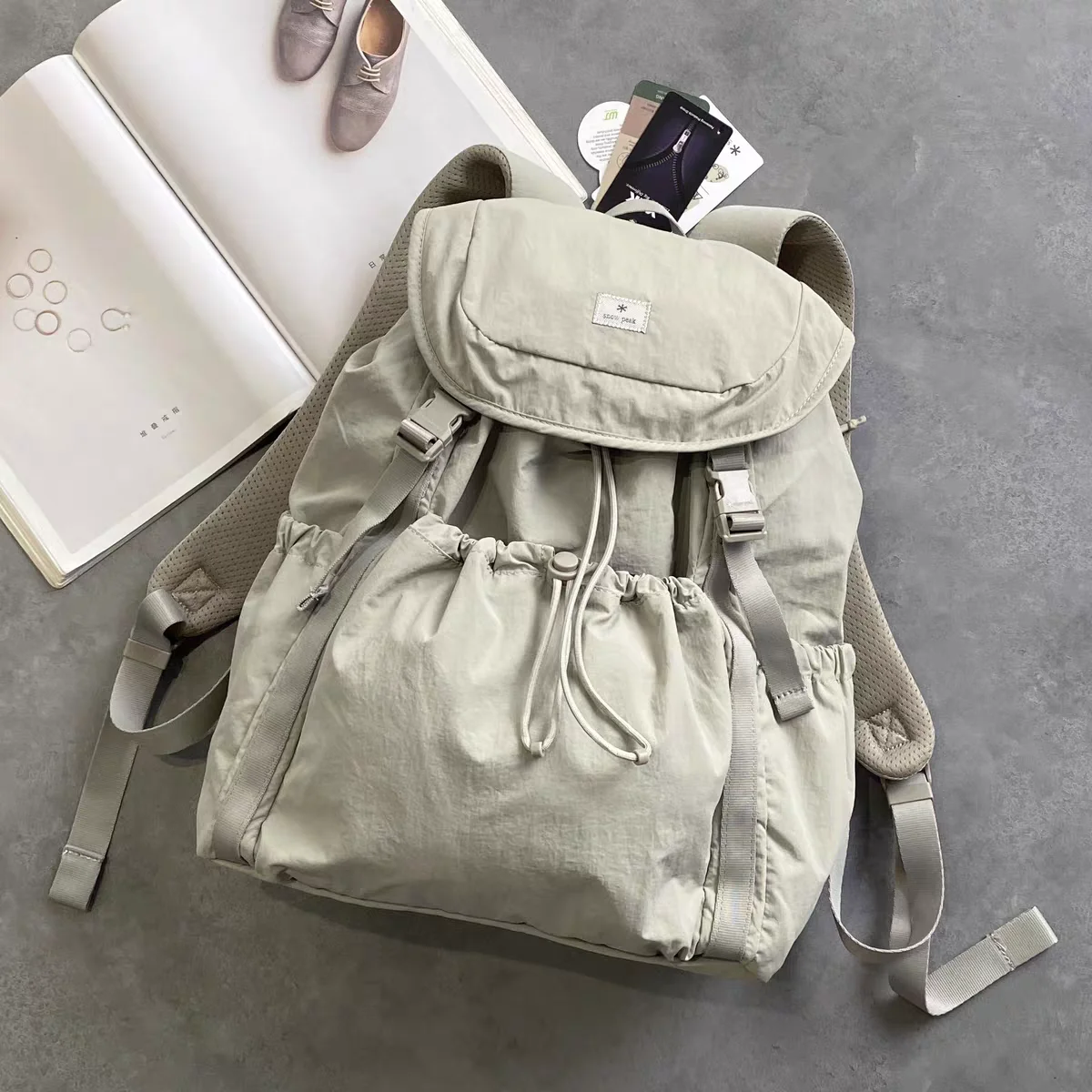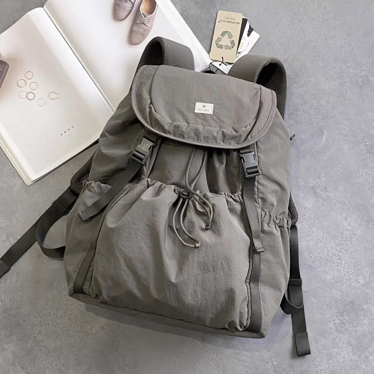내구성이 뛰어난 나일론 소재로 제작된 이 백팩은 가볍게 디자인되어 장거리 하이킹이나 여행 중에도 편안함을 제공합니다.