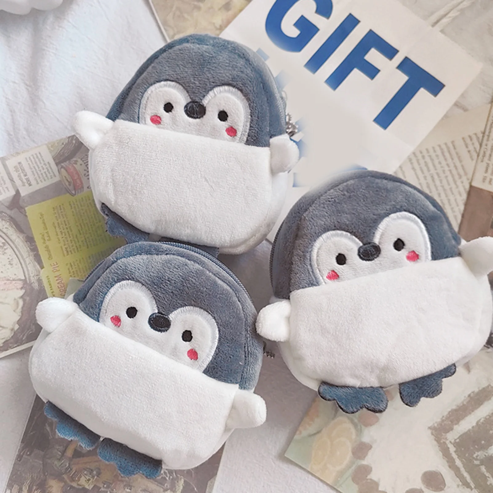 Cute Design: The sweet little penguin and embroidery craft combine to make these plush coin purses a must-have item for sweet girls.
