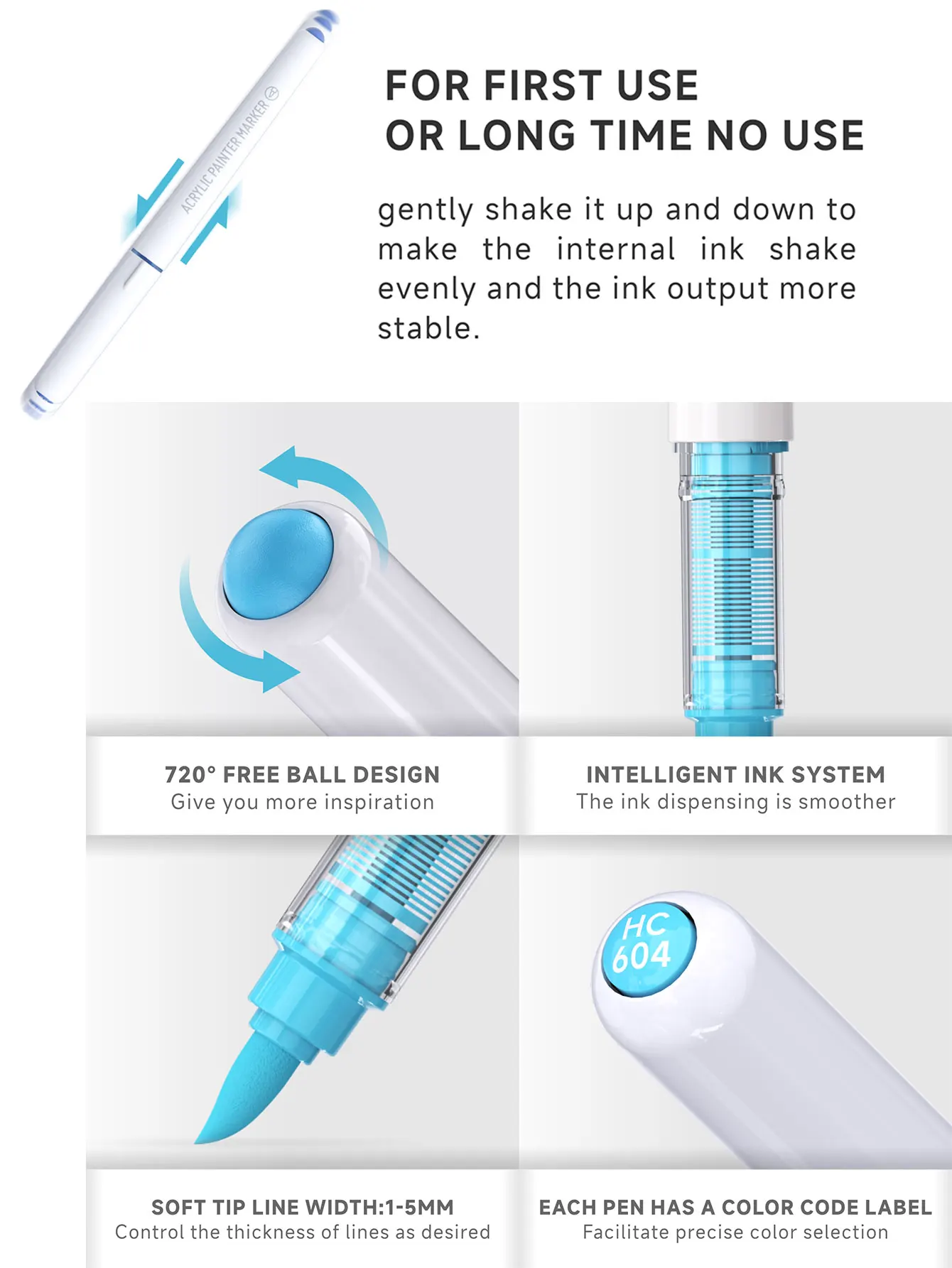 펜은 잘 작동합니다. 사용하기 전에 충분히 흔들어줘야 합니다. 넓은 면적을 채우려면 잠시 '휴식'을 취하게 한 후 다시 흔들어 잉크가 더 농밀하게 흘러나오도록 해야 합니다.