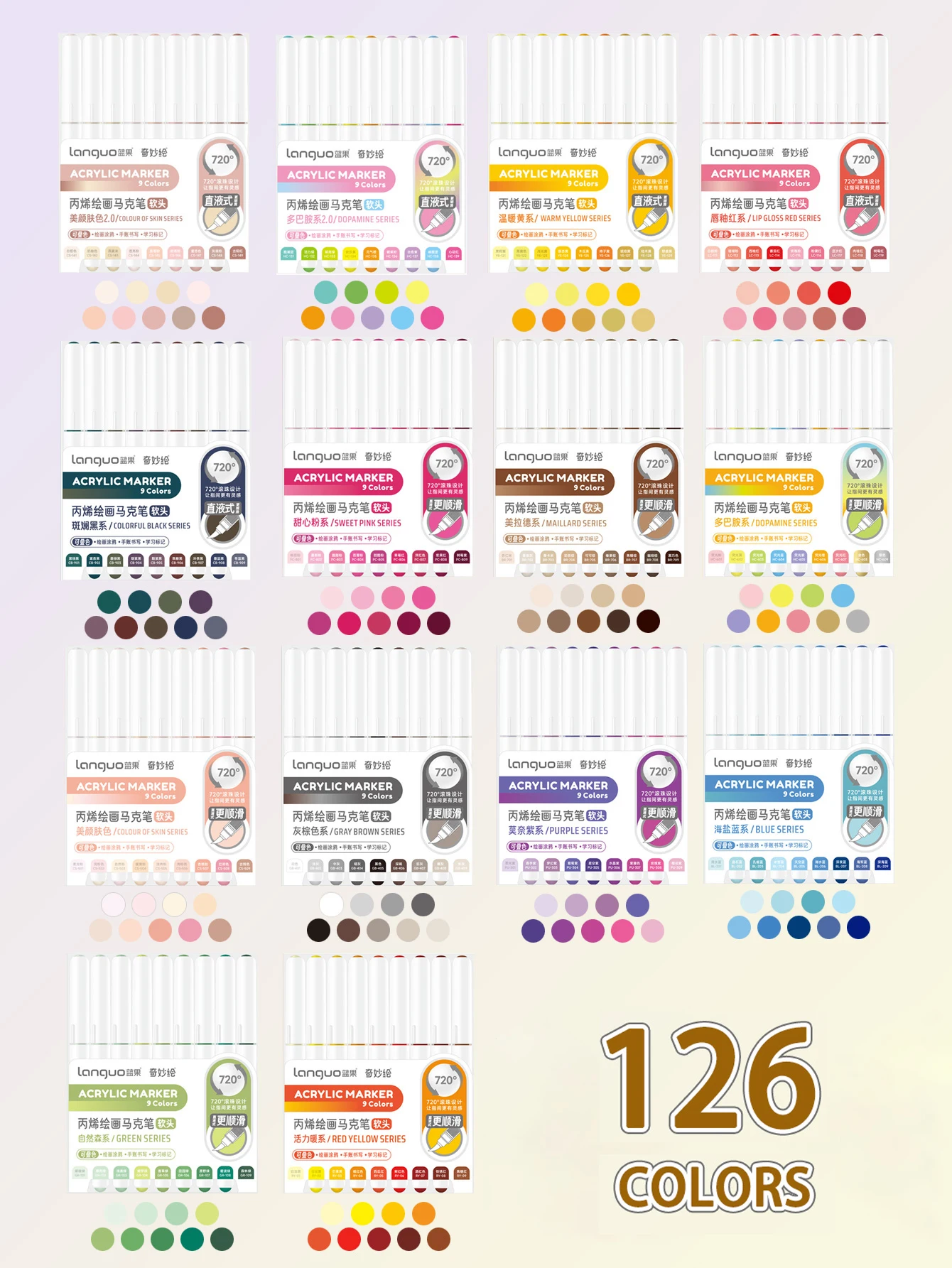 펜은 잘 작동합니다. 사용하기 전에 충분히 흔들어줘야 합니다. 넓은 면적을 덮을 계획이라면 잉크가 더 농밀하게 흐르도록 잠시 '휴식'을 취하게 한 후 다시 흔들어주면 좋습니다. 회갈색 세트에 없는 다양한 회색 음영을 보니 정말 좋네요! 밝기는 비슷하지만 색조가 다양합니다.