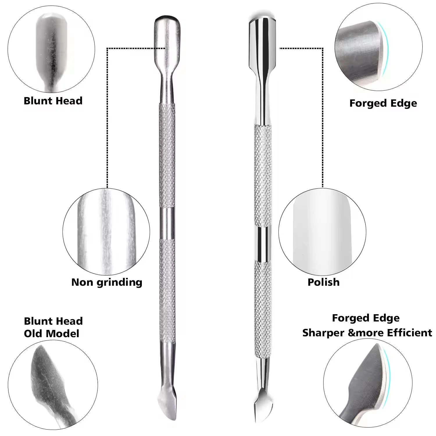 3. 둔해지지 않습니다: 당사의 큐티클 제거제는 프리미엄 브러시드 스테인레스 스틸로 만들어져 오랜 기간 동안 선명도를 유지합니다.사용할 때마다 정밀한 절단이 가능합니다!