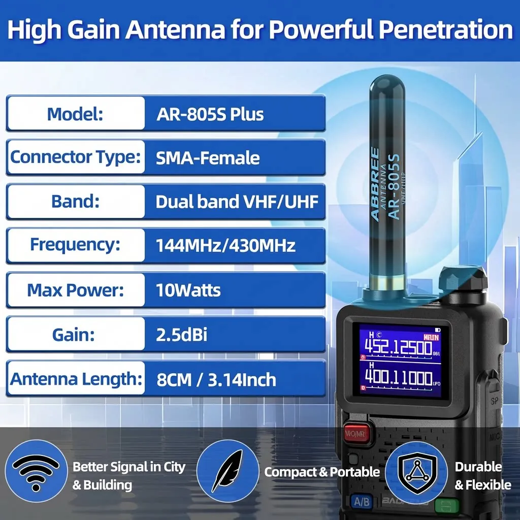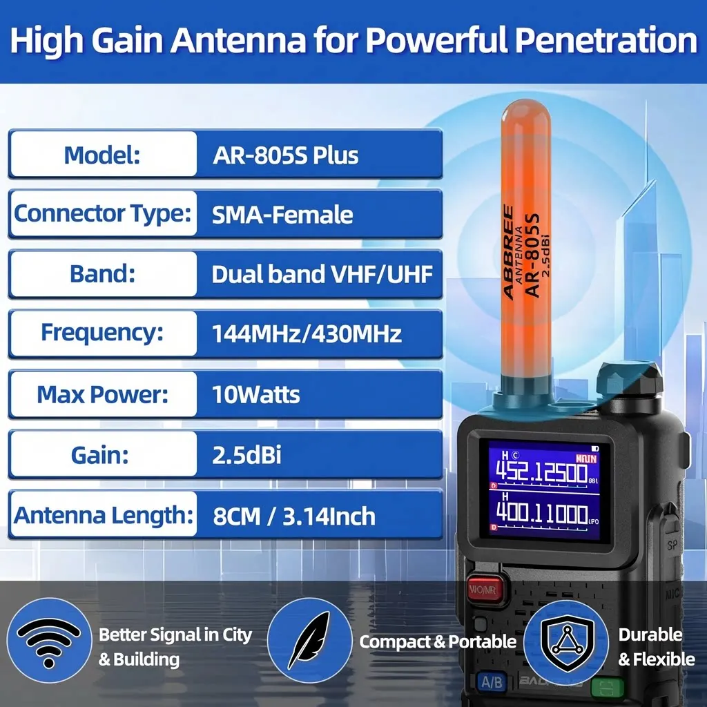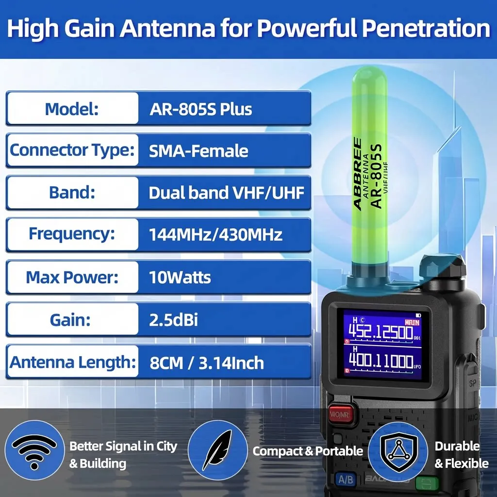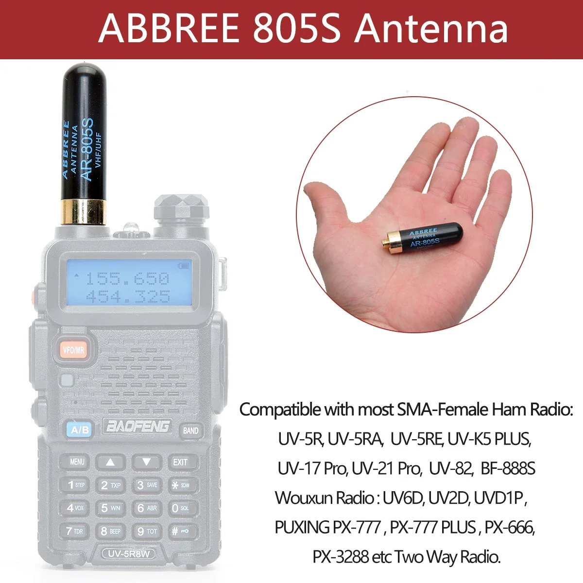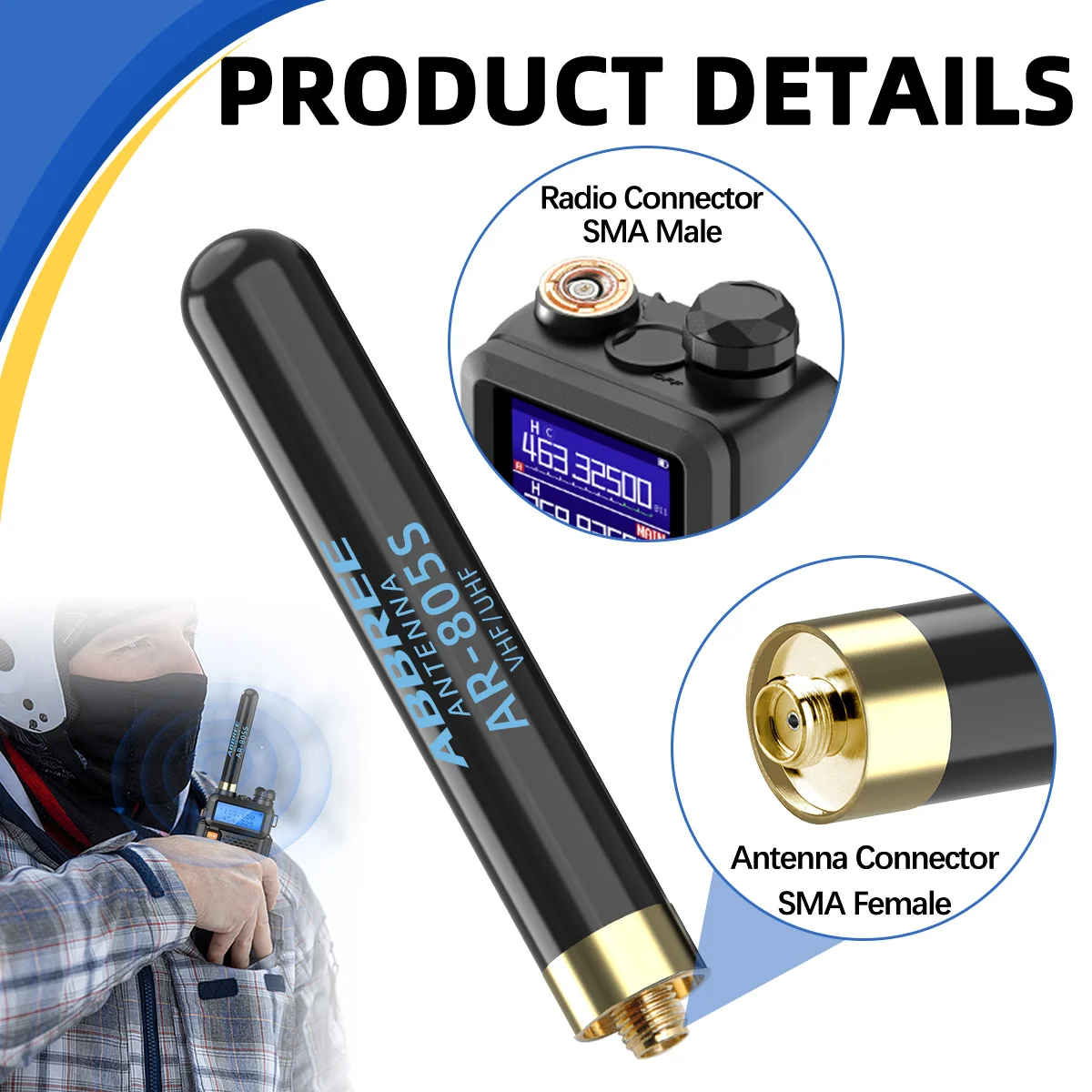 ABBREE AR-805S 미니 단거리 워키토키 VHF UHF 안테나 SMA-암컷
