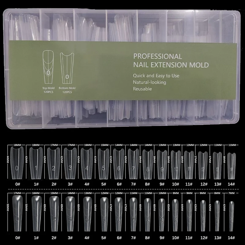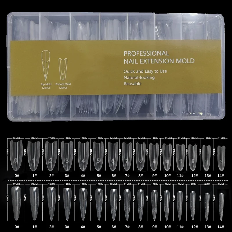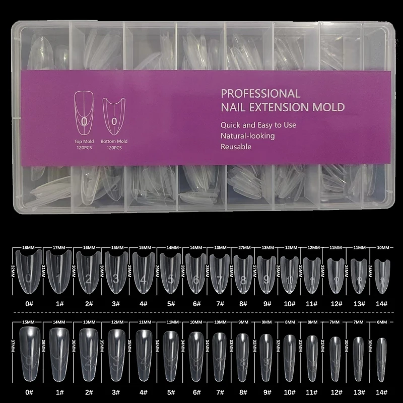 240개 샌드위치 듀얼 네일 폼 코핀 아몬드 네일 폼 15사이즈 재사용 가능 탑/바텀 폼 네일 아트 연장 탑 몰드/바텀 몰드