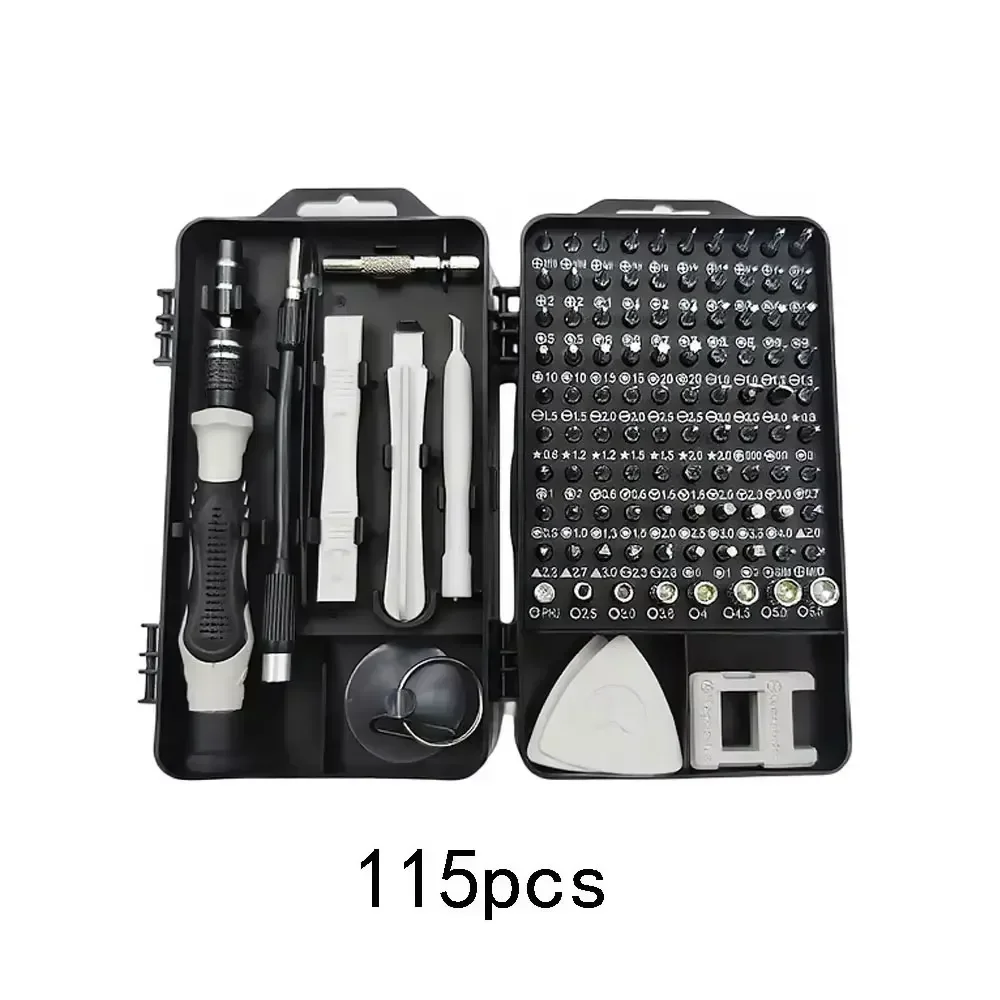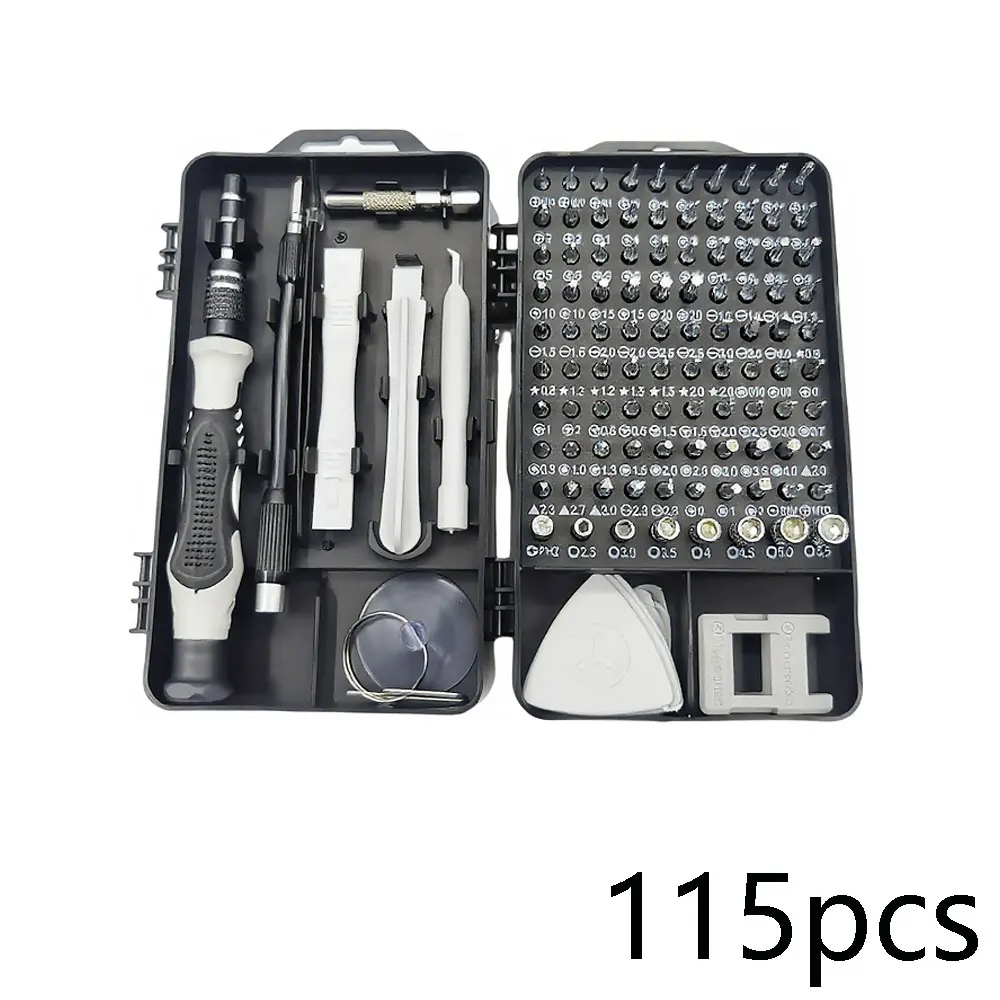 [115 in 1, 가정 필수품] 이 소형 드라이버 세트는 98가지 다양한 비트(필립스, 일자, 토르크, 토르크 보안, 펜타로브, 육각 등)와 여러 개의 오프닝 도구를 포함하여 가장 완벽한 수리 키트를 제공합니다.