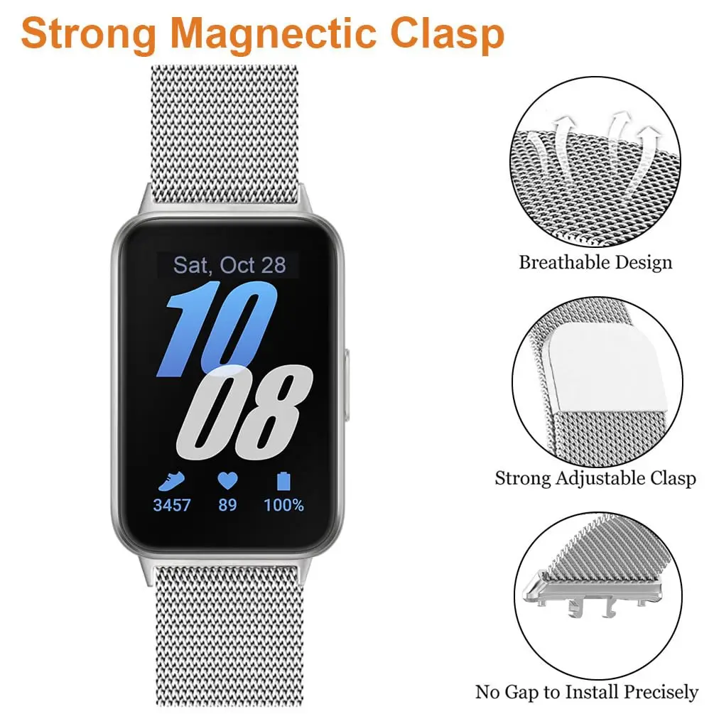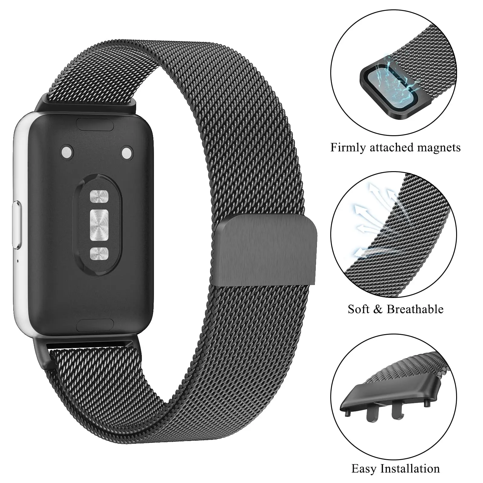 삼성 갤럭시 핏 3용 밀레니즈 루프 스트랩, 자석 스테인리스 스틸 교체용 팔찌 손목 밴드, 갤럭시 핏 3 액세서리 코레아