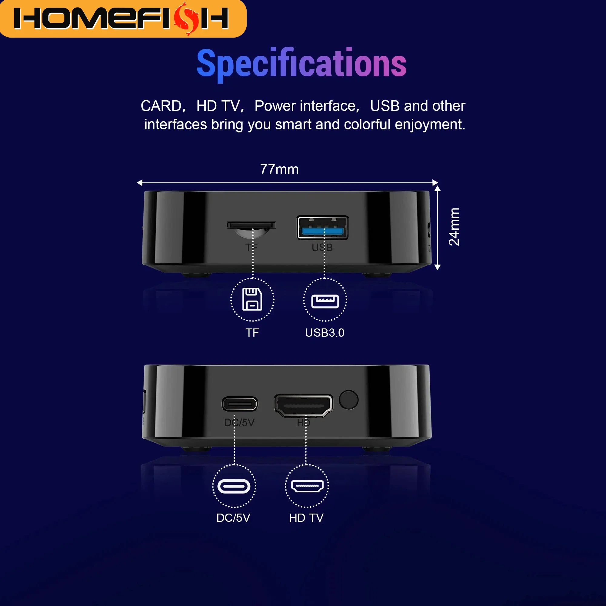 포트 전체 구성: HDMI, 이더넷, SPDIF, AV, TF, USB 3.0/2.0