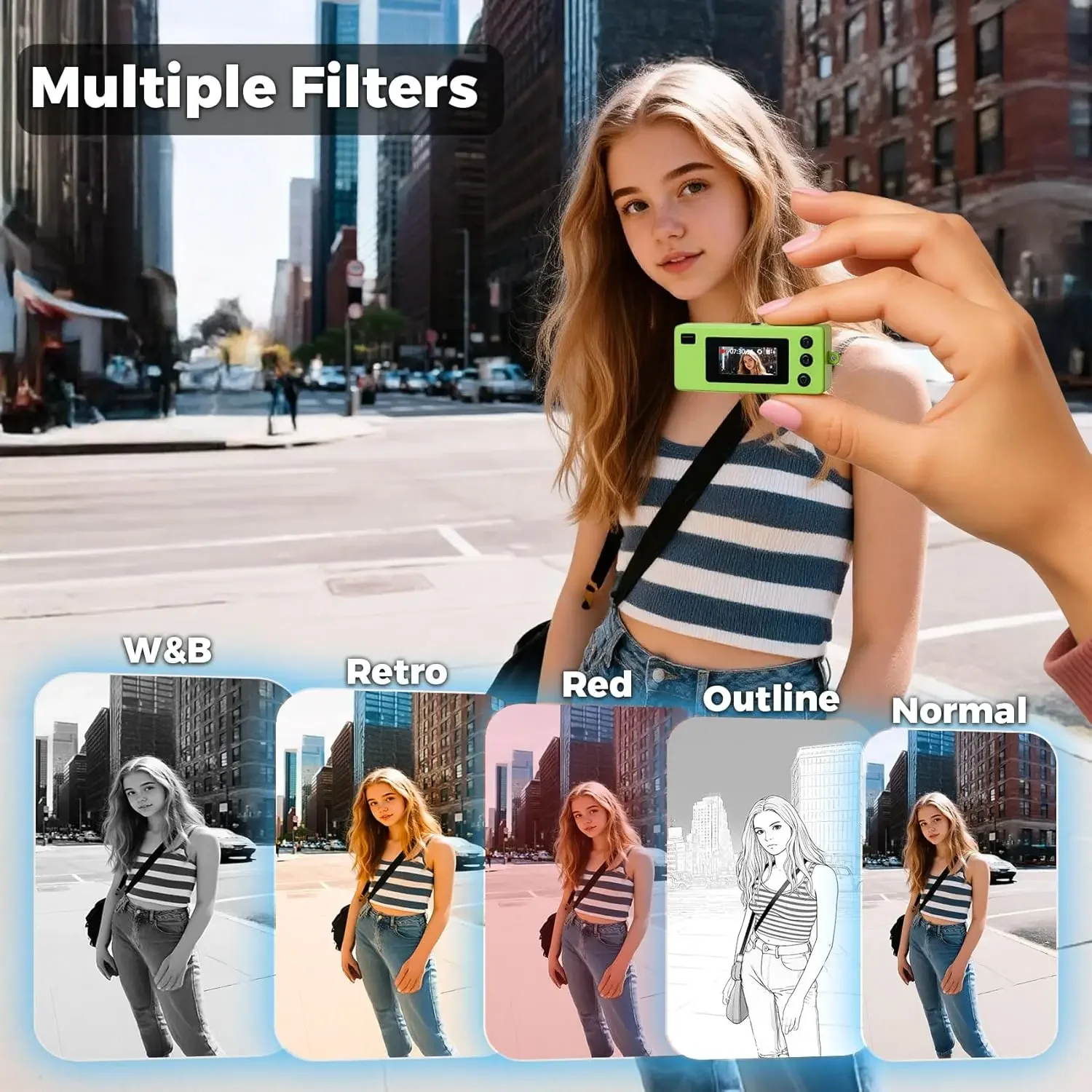 열쇠고리에 걸 수 있을 만큼 작은 이 미니 카메라는 여행, 파티 또는 일상적인 모험을 위한 완벽한 동반자입니다.