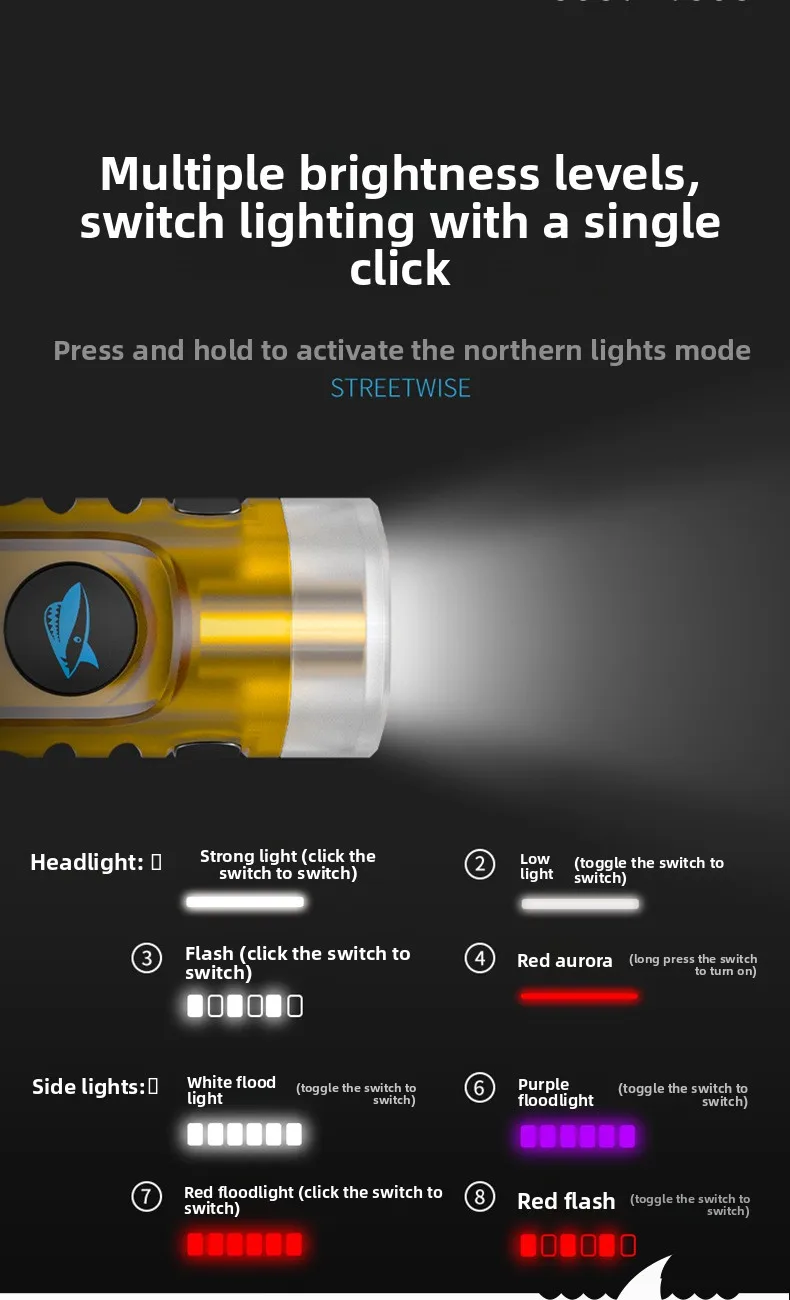 적외선 측면 조명이 장착된 이 손전등은 저조도 조건에서도 가시성을 보장하여 야외 활동 중 안전성을 향상시킵니다.