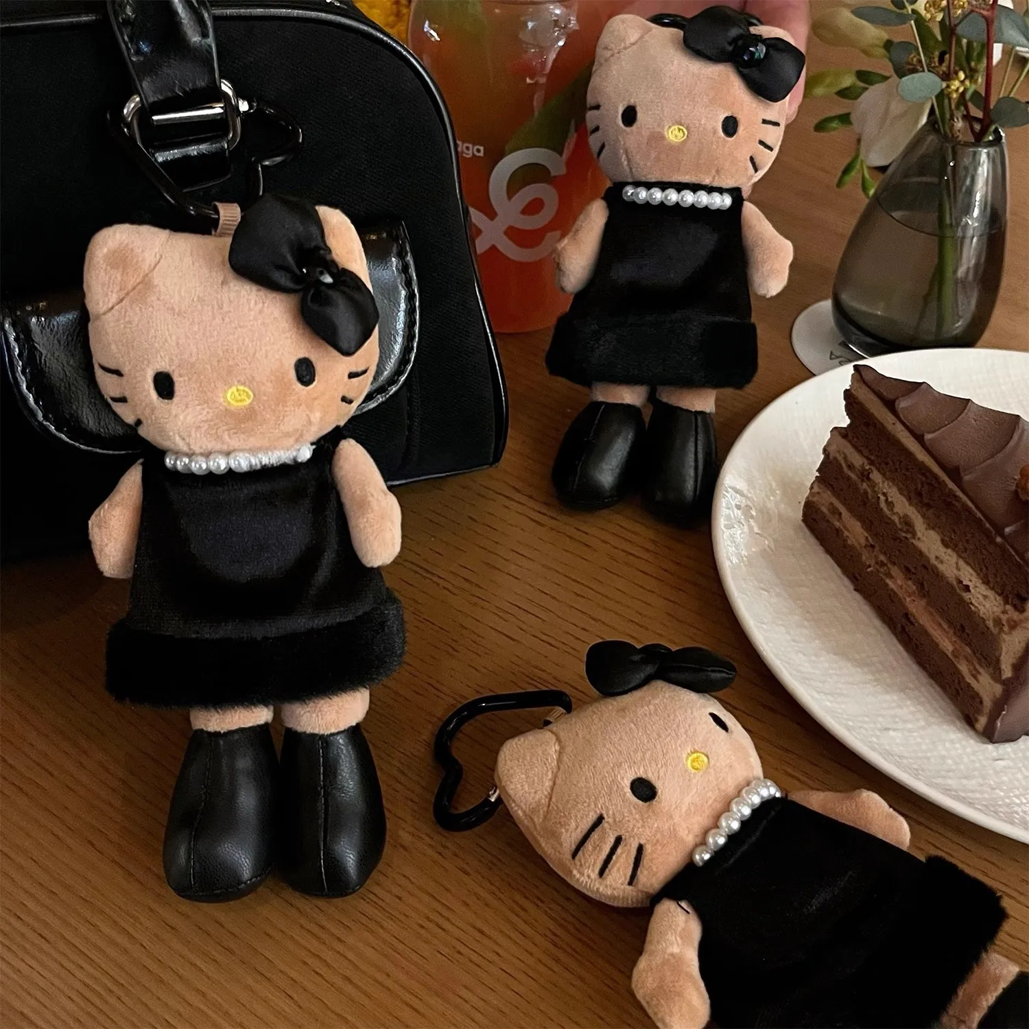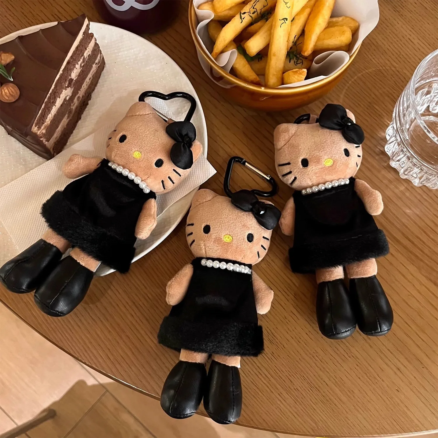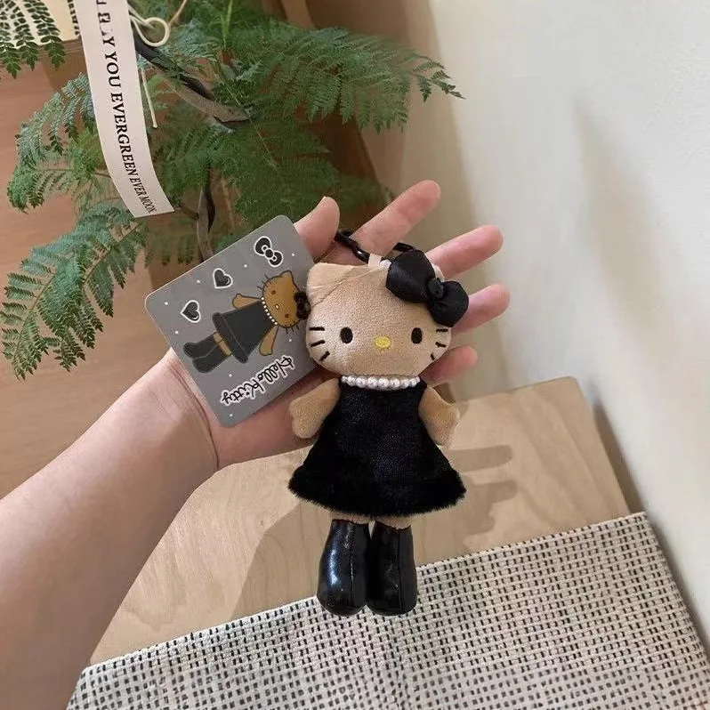 헬로 키티 카와이 레오파드 프린트 블랙 스킨 러브 버튼 긴 다리 고양이 플러시 체인 키 체인 소녀를위한 생일 선물