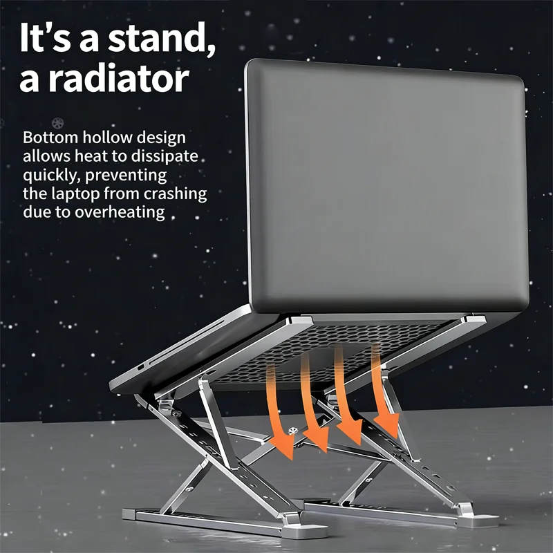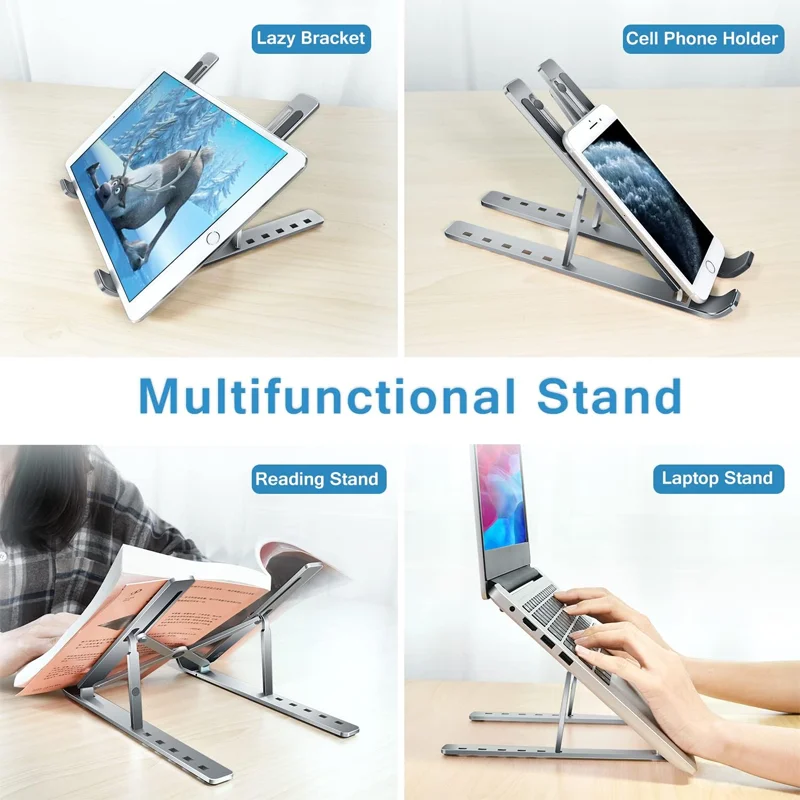 • 인체공학적 디자인: 이 노트북 스탠드의 접이식 디자인은 올바른 자세와 인체공학을 보장하여 노트북 사용 시 허리와 목의 부담을 줄여줍니다.