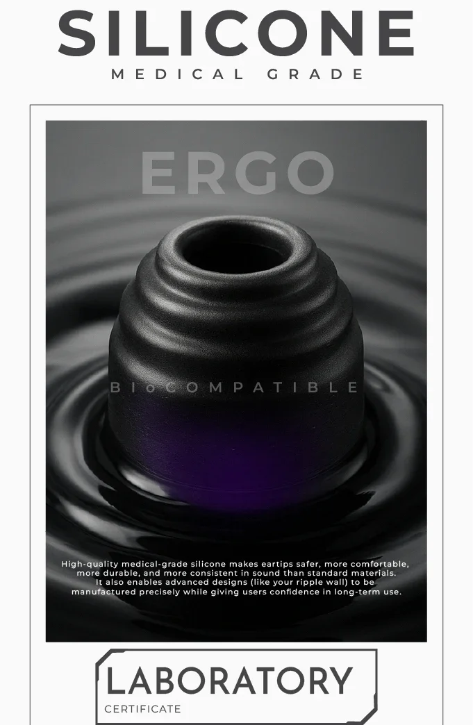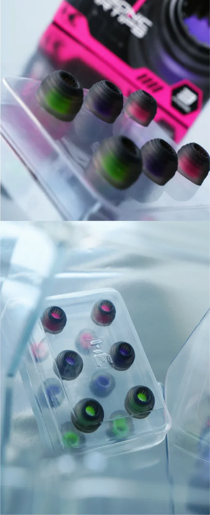 고품질 의료용 실리콘으로 제작된 이어버드 팁은 일반 소재에 비해 더 안전하고 편안하며 내구성이 뛰어난 착용감을 제공하며, 더욱 일관된 음질 성능을 제공합니다.이 소재는 또한 벨로우즈와 같은 고급 설계를 정밀하게 구현할 수 있도록 하며, 사용자에게 장기적인 성능에 대한 신뢰를 제공합니다.