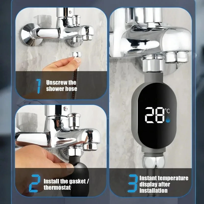 3. 간편한 설치: 샤워 튜브 분리, 강화 실리콘 씰 위치 조정, 게이지 장착의 3단계로 즉시 온도 모니터링을 시작하세요.렌치, 드릴 또는 배관 수정이 필요하지 않습니다.