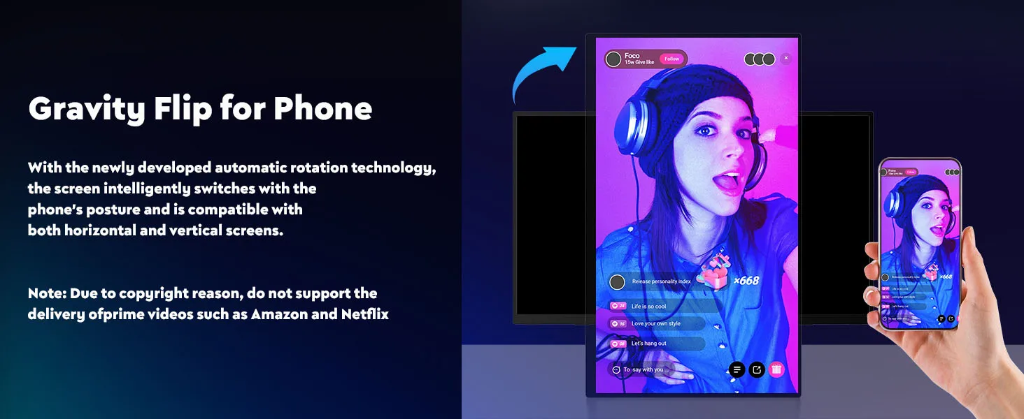무선 스타일은 내장된 중력 센서를 갖추고 있으며, 화면은 투사 후 360° 회전할 수 있습니다!