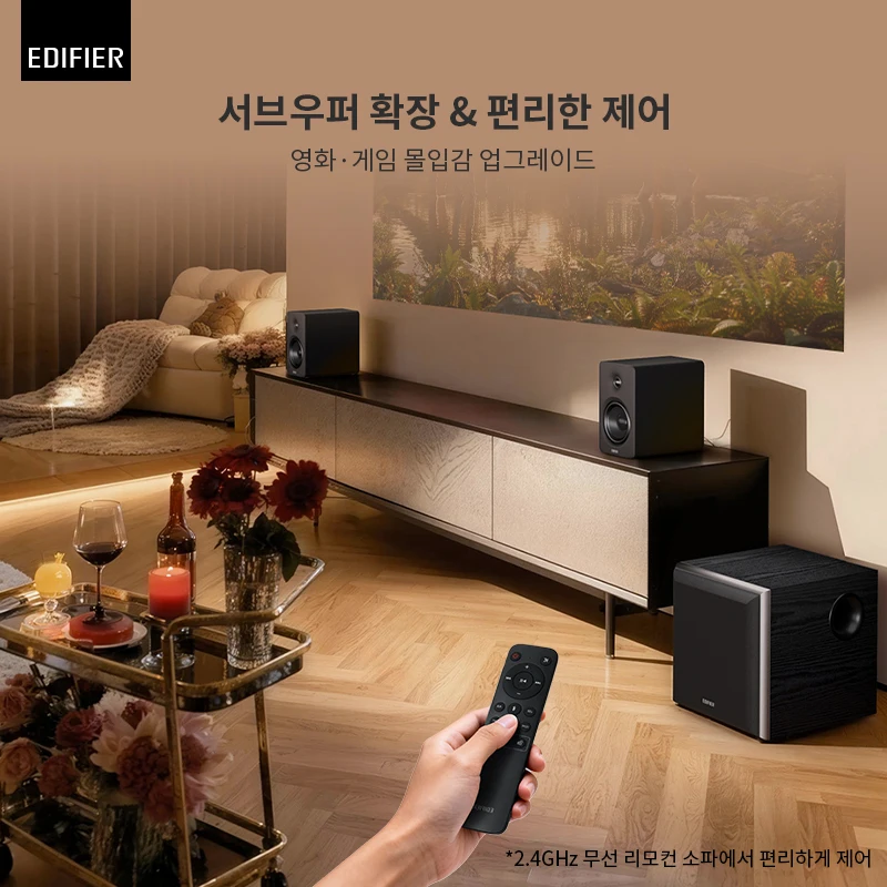 가성비 최고의 스피커 입니다!! 어디에나 편하게 연결 가능하고 리모컨 유무는 정말 편의성이 엄청나게 늘어나는 것 같네요. hdmi eARC 포트는 신의 한수 !!