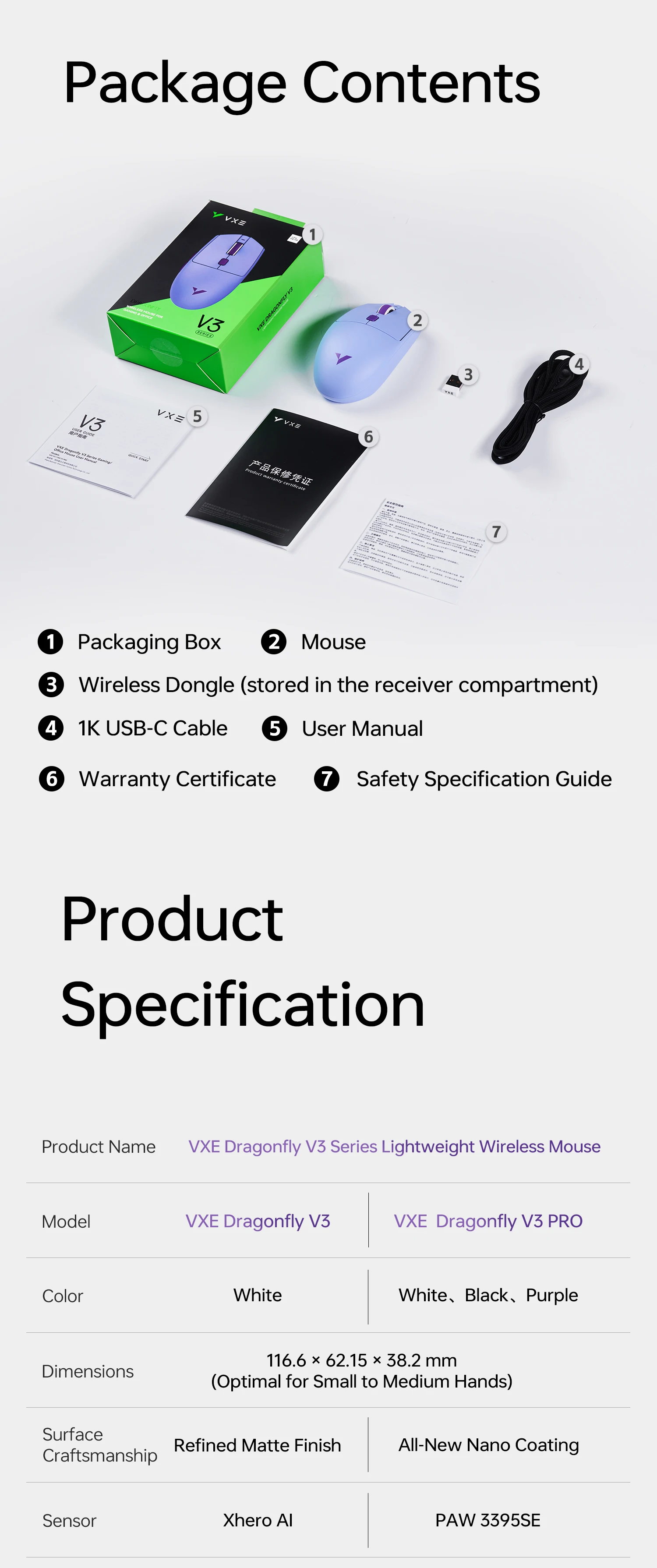 VXE Dragonfly V3 시리즈 경량 무선 마우스