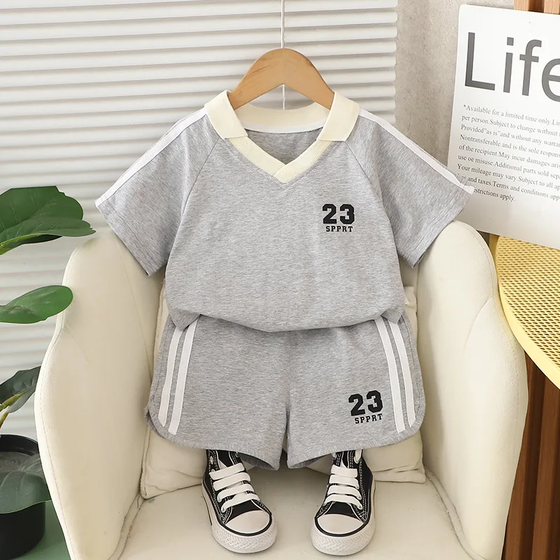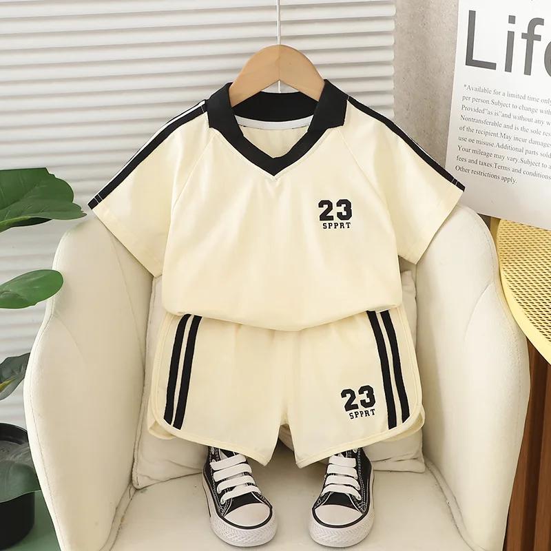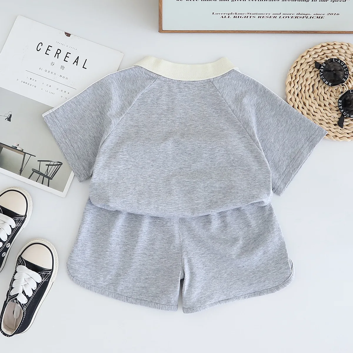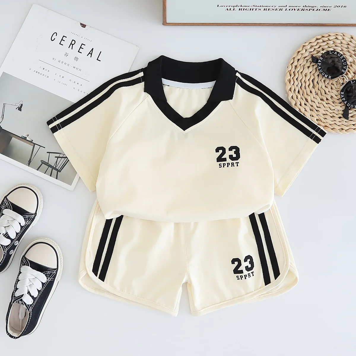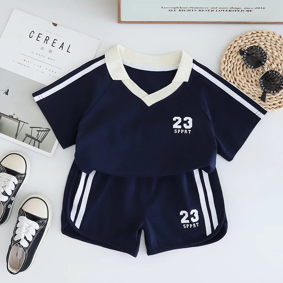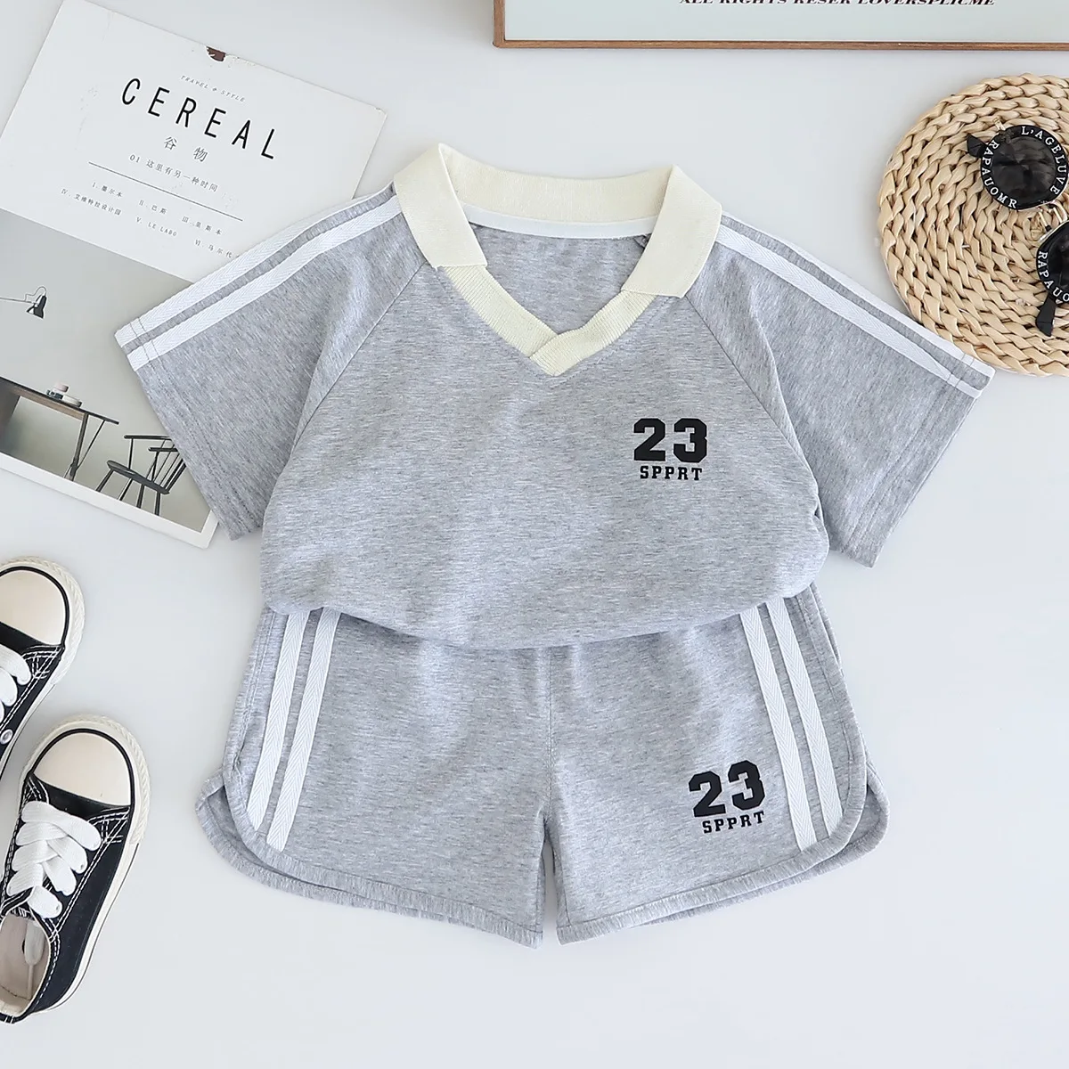 2026 여름 남아 의류 세트 숫자 레터 캐주얼 턴다운 칼라 티셔츠 상의 반바지 2PCS 세트 1-5세 아동 트레이닝복