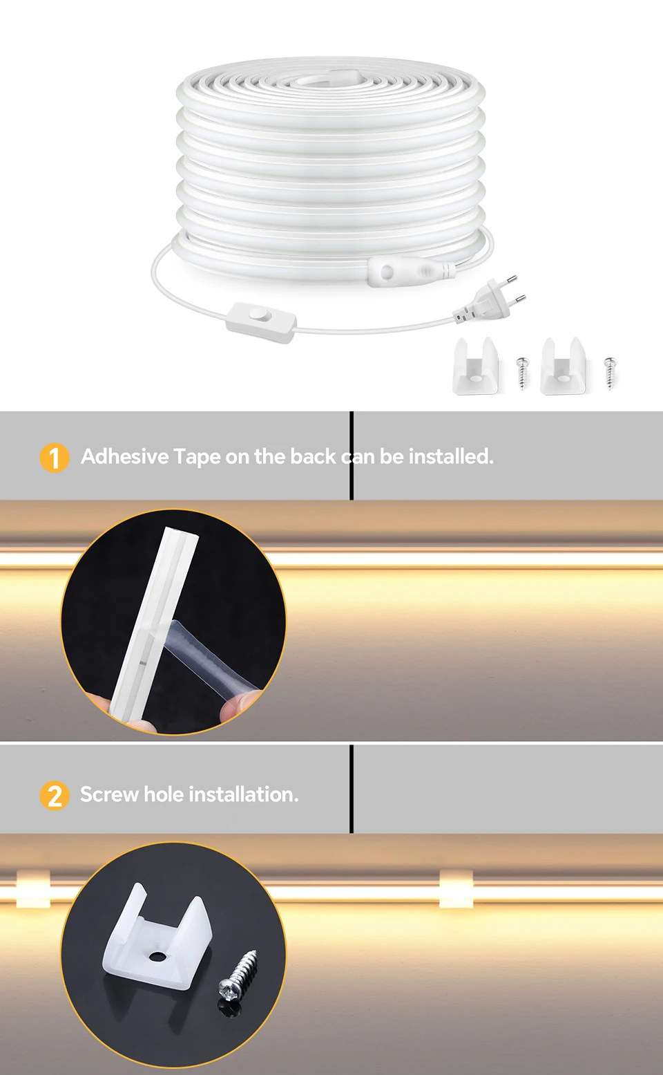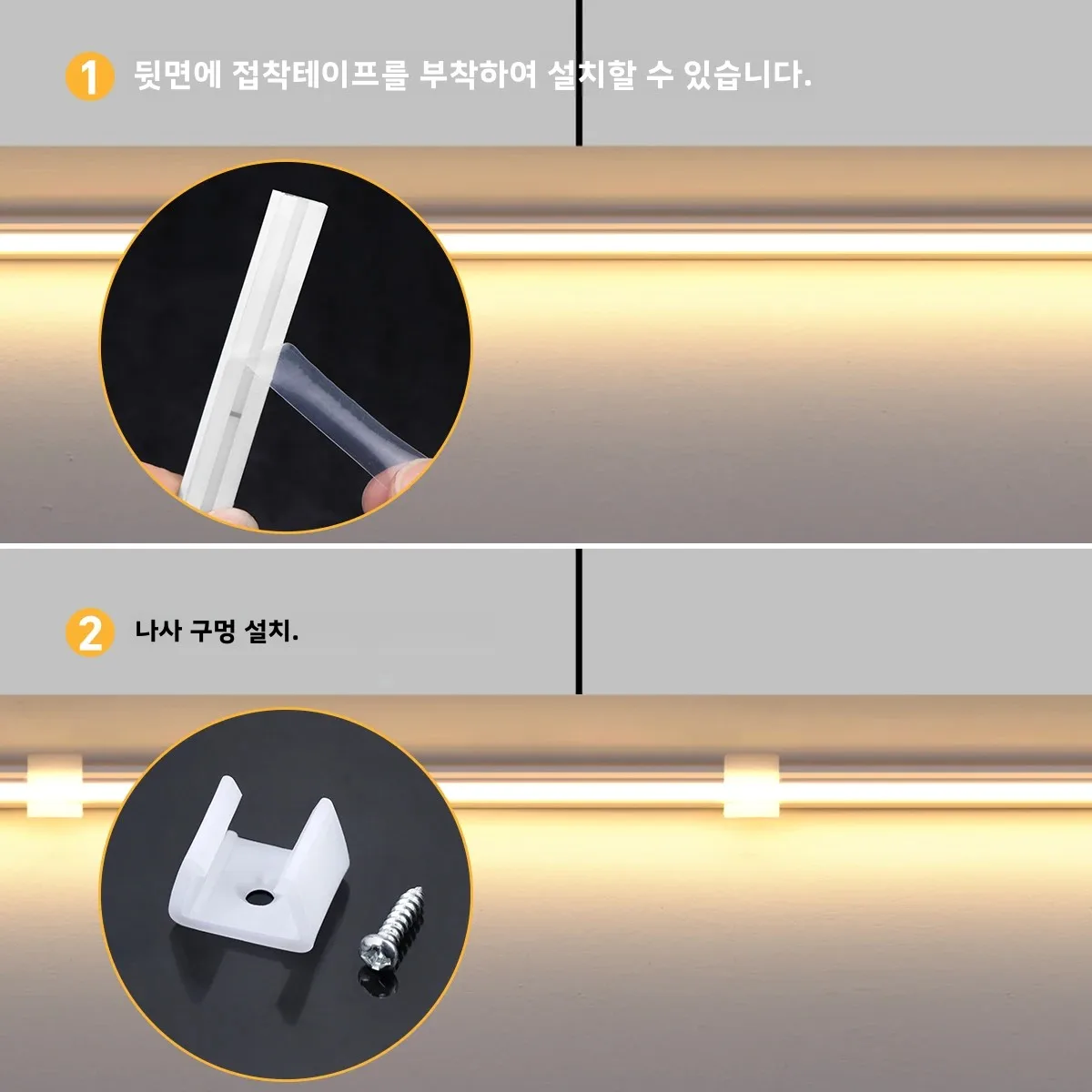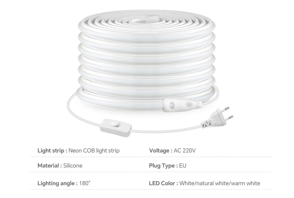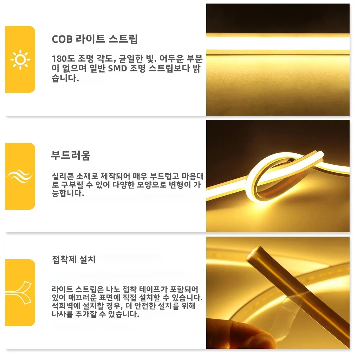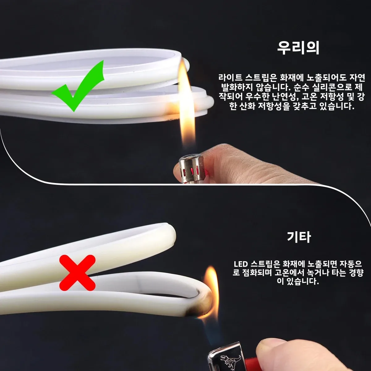 주요 특징: 깜박임 없음, 어두운 영역 없음, 부드러운 빛, 구부릴 수 있음, 난연성