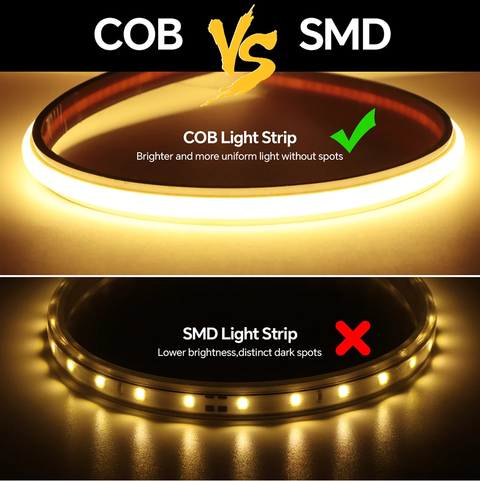 균일하고 깜박임 없는 빛을 제공하는 180° 넓은 빔 각도로 어두운 부분이 없으며, 기존 SMD LED 스트립보다 30% 더 밝습니다.