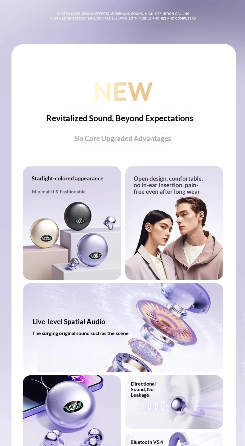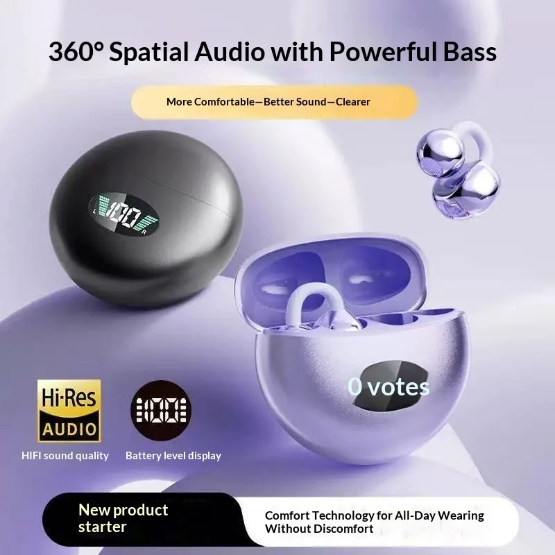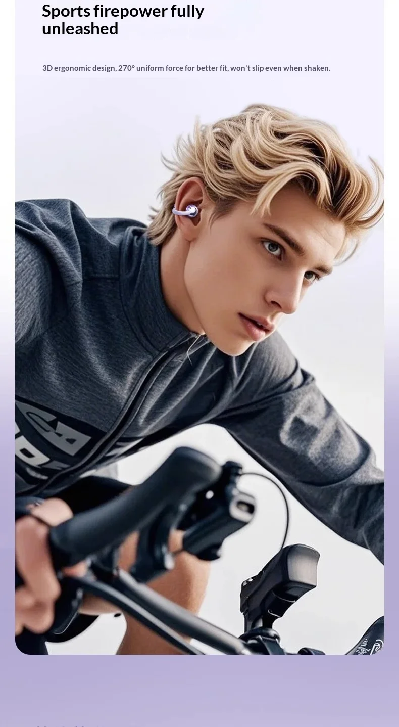초고급 편안함의 오픈이어 디자인:인체공학적 이어클립 스타일은 귀를 막지 않고 꼭 맞으며, 장시간 착용해도 편안하며, 스포츠, 통근, 사무실 사용 시 안정적인 낙하 방지 기능을 제공합니다.