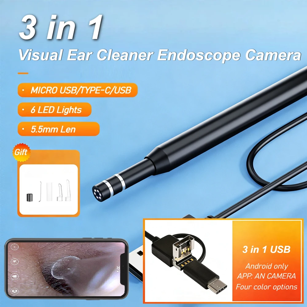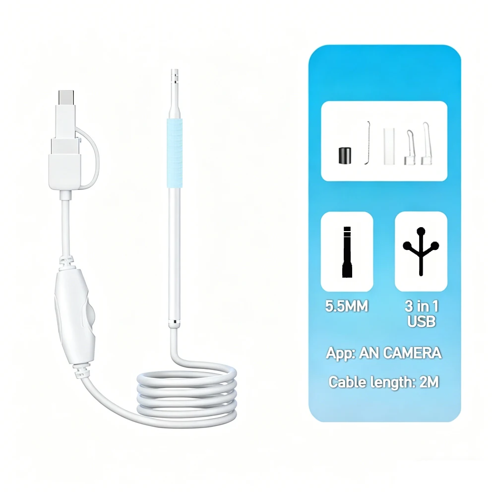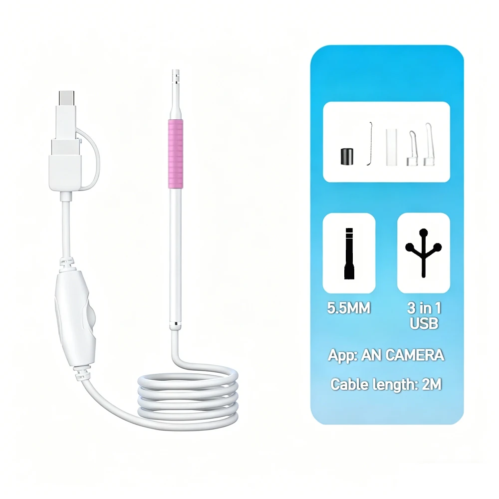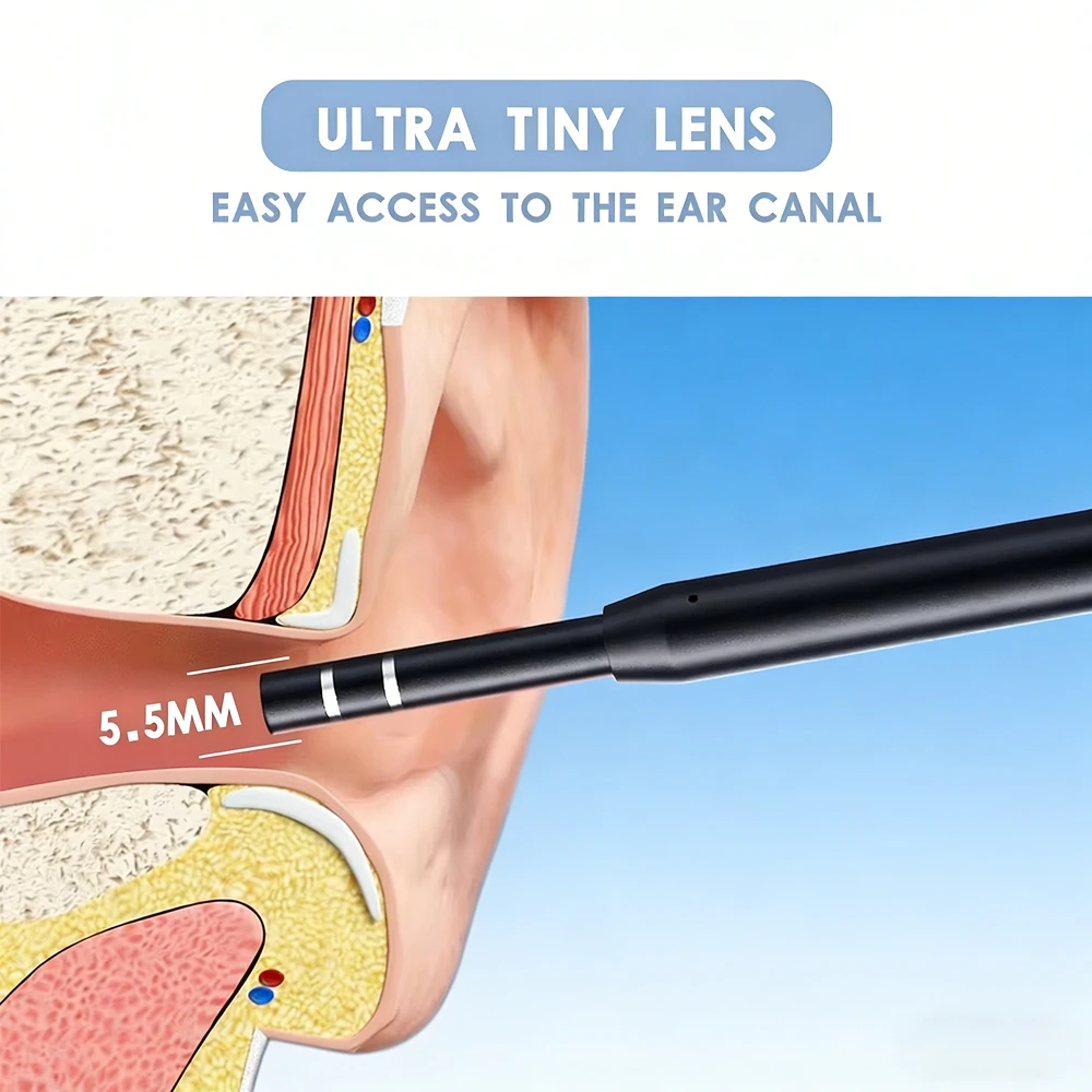 6개의 LED 보조 조명이 장착되어 귀 내부를 충분히 밝게 비춰주며, 5.5mm 렌즈 직경은 귓속 크기에 맞게 조정되어 귓속 내부를 선명하게 촬영할 수 있습니다.