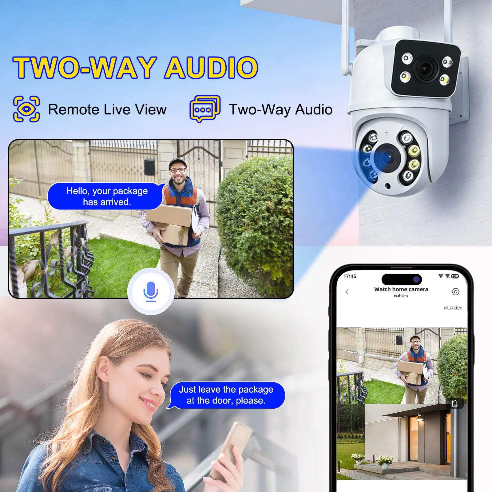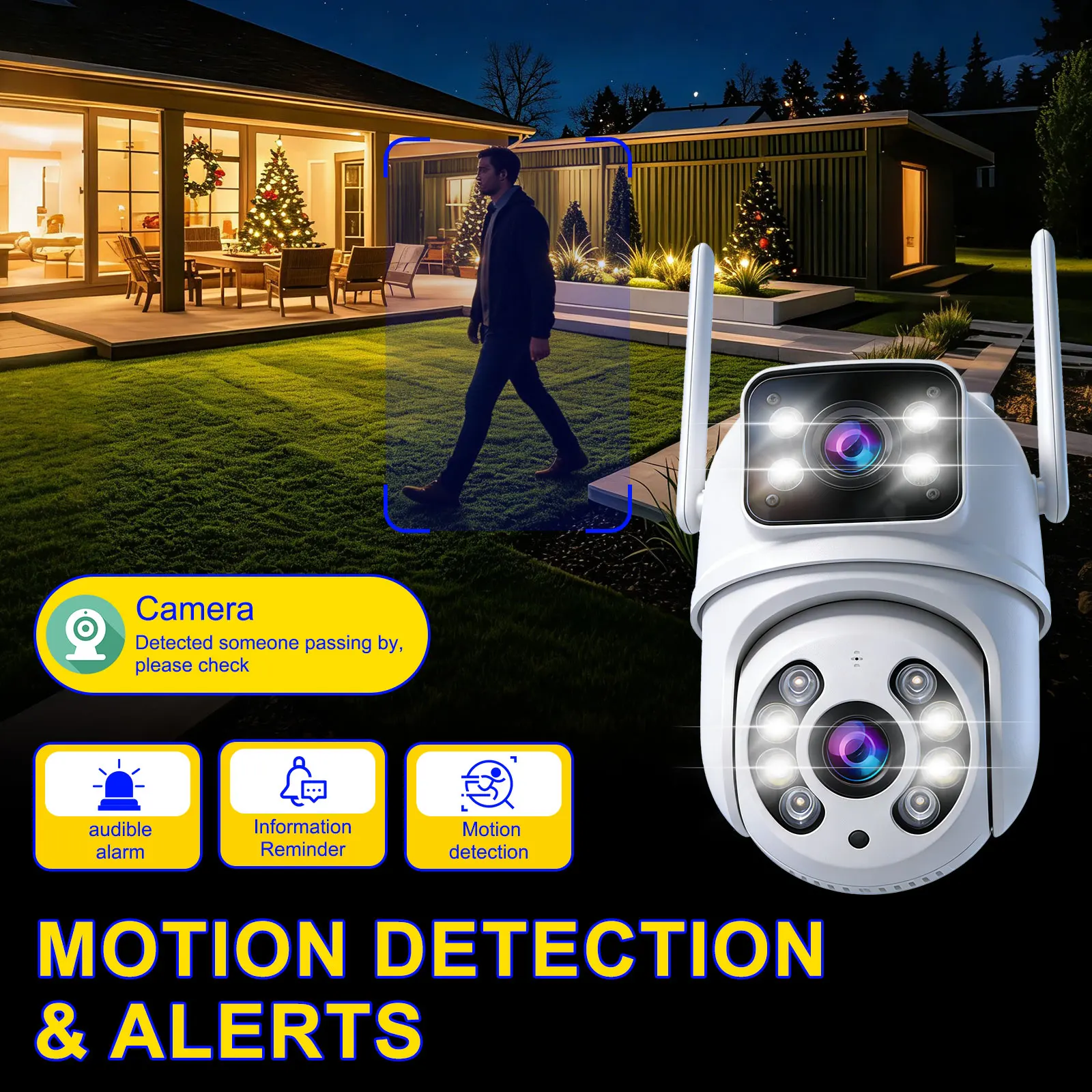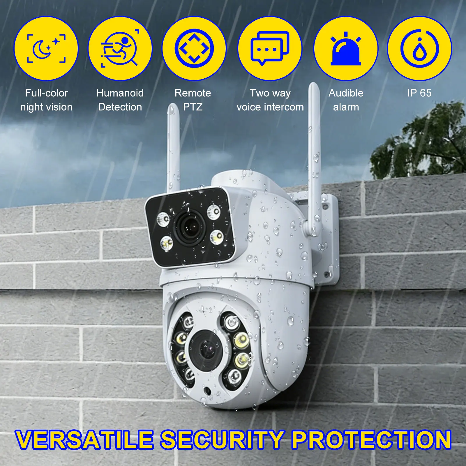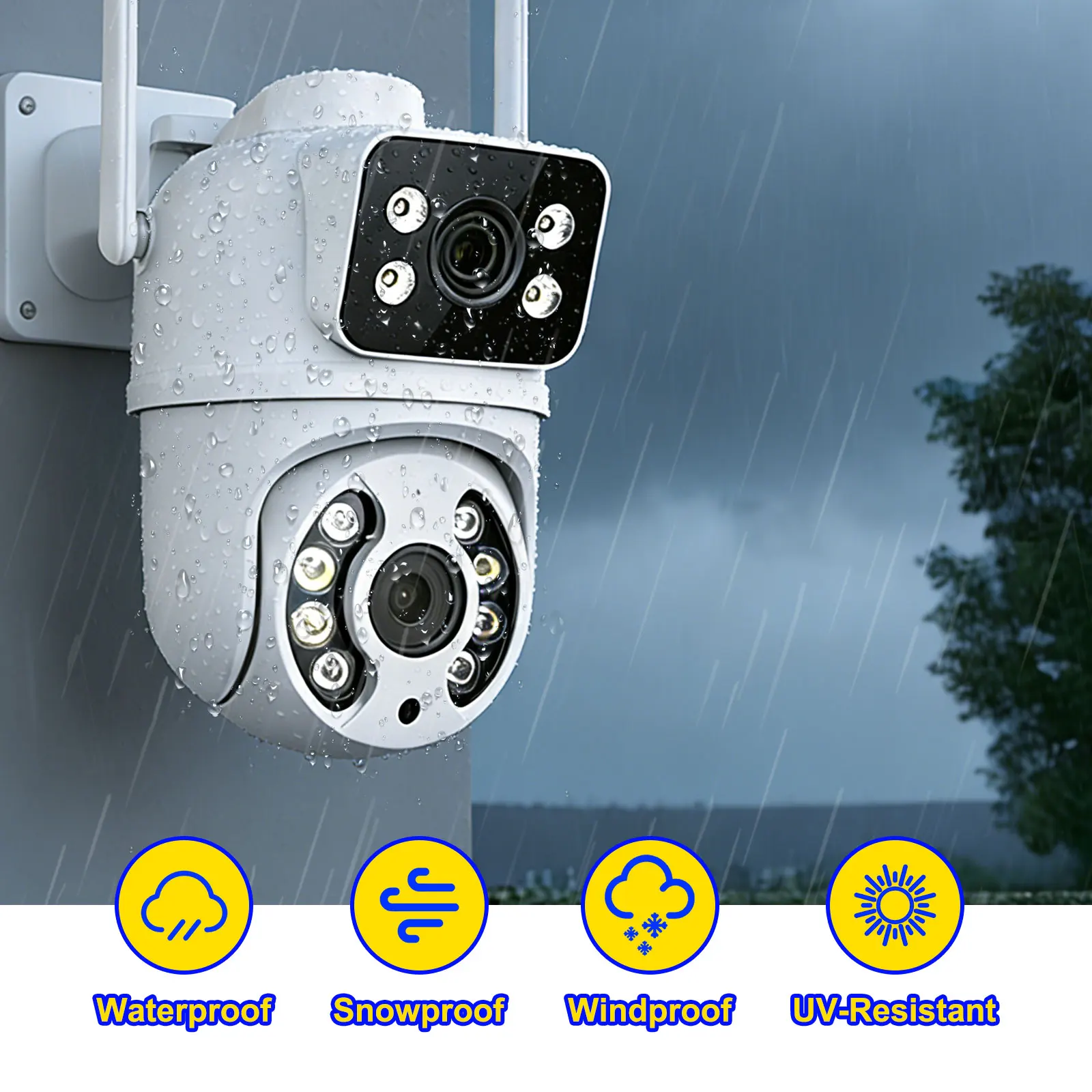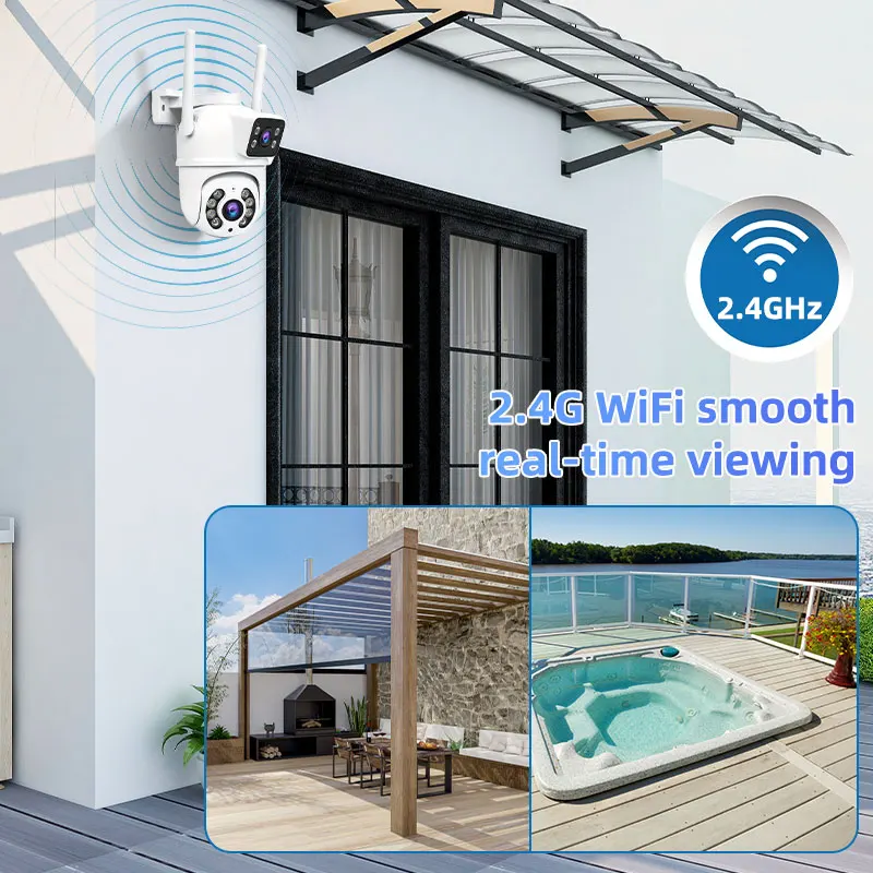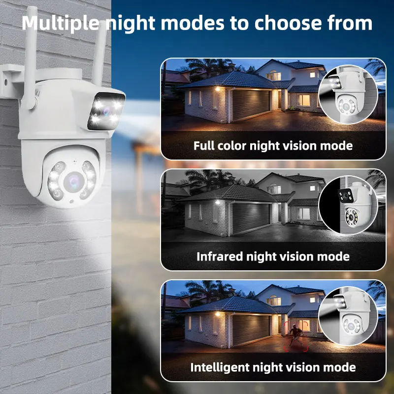 듀얼 렌즈를 탑재한 이 카메라는 광각 커버리지를 제공하여 종합적인 모니터링이 가능합니다.