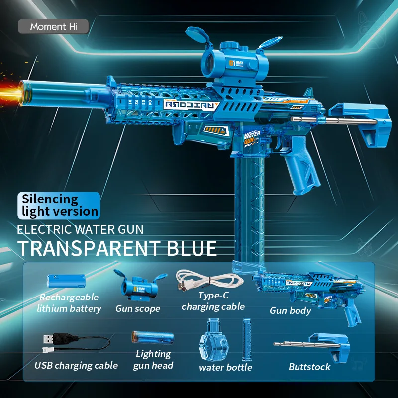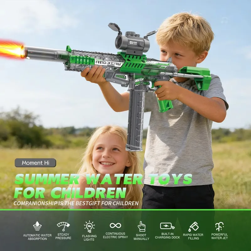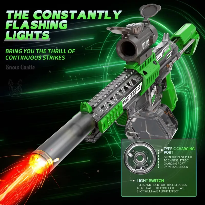 MK9 전동 물총, 유도 플래시 라이트 포함, 어린이 자동 물 흡수 분사총, 여름 야외 장난감