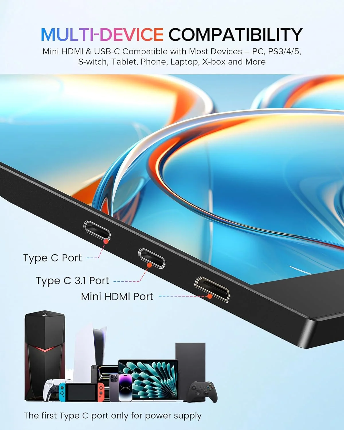 AHXJKA 17.3인치 휴대용 모니터 72%sRGB 1600*900P IPS(노트북 폰용 Type-C 미니 HDMI 포함) XBox PS4/5 Mac SwitchExtender