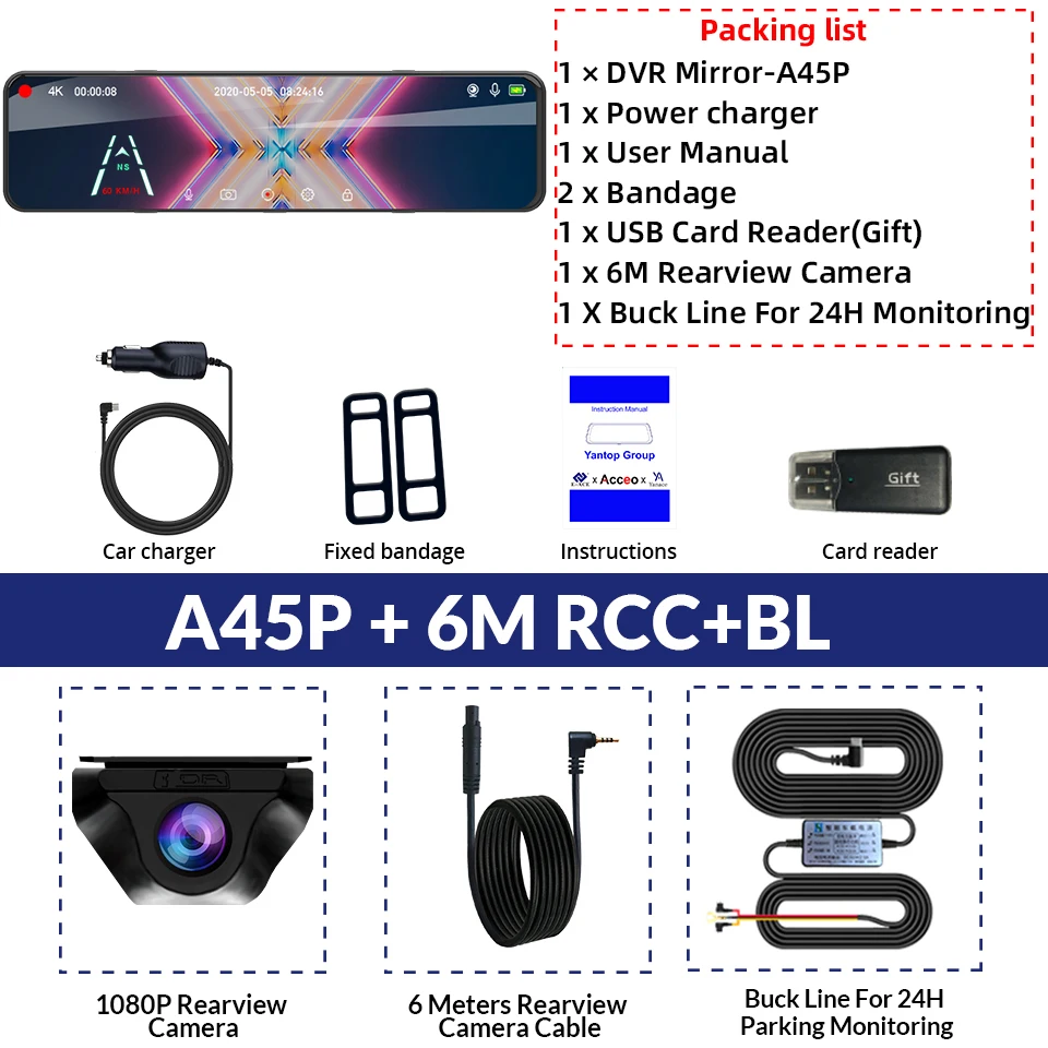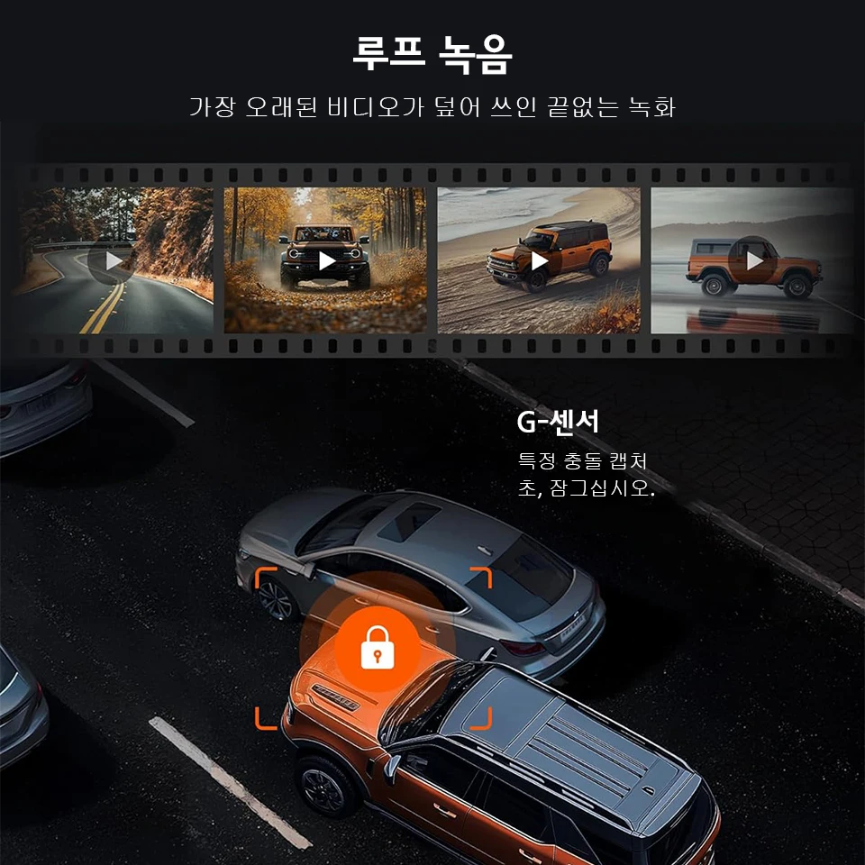 11.26인치 터치 슈퍼 스크린 디스플레이 11.26인치 터치스크린으로 더욱 편리하게 조작할 수 있으며, 차량 카메라를 매우 빠르게 작동할 수 있어 운전 중 안전을 확보할 수 있습니다. 2.5D 곡면 스크린 2.5D 곡면 유리 디자인, 스크래치 방지, 눈부심 방지, 지문 방지. 170도 각도의 전방 카메라와 140도 각도의 야간 투시 후방 카메라(옵션)로 두 가지 각도에서 동시에 영상을 녹화할 수 있습니다. 두 개의 분할 화면을 통해 전방과 후방 카메라의 영상을 선명하게 확인할 수 있습니다. 실시간 디스플레이 후방 주차 뷰 주행과 주차 시 스마트 후방 각도 전환. 주행 중에는 후방의 모든 차량과 물체를 선명하게 볼 수 있으며, 주차 시에는 자동으로 후방 카메라로 전환되어 더욱 가까운 백업 이미지를 제공합니다. 루프 녹음 루프 녹화는 저장 공간이 가득 차면 가장 오래된 영상을 자동으로 덮어쓰고, 새로운 영상을 지속적으로 녹화하여 저장 공간 부족으로 인한 작업 중단을 방지하고, 레코더를 장시간 연속 사용할 수 있도록 합니다. 24시간 주차 모니터링 차량 시동이 꺼진 상태에서도 계속 작동하며, 차량 주차 시 스크래치, 충돌, 도난 등 이상 상황을 기록하고 증거를 보관하여 책임 소재 확인 및 보상 청구에 도움을 줍니다. 불법 행위를 예방하고 주차 분쟁을 해결하며, 차량의 정적 안전을 종합적으로 보호합니다. 하드와이어 키트 담배 라이터 인터페이스를 점유하지 않으려면 하드와이어 키트를 사용하십시오. 후방 카메라 설치에 대하여