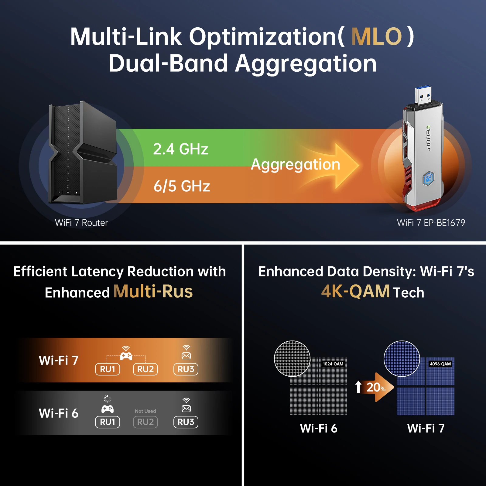 BE6500 Wi-Fi 7 트라이밴드(2.4GHz/5GHz/6GHz) 최대 속도 6500Mbps 지원