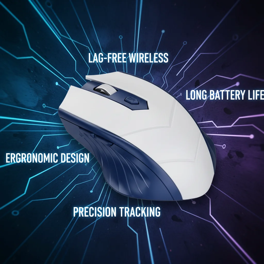 사무실 및 게임용 인체공학 무선 블루투스 마우스 – 충전식, 정밀, 편안함을 위한 설계