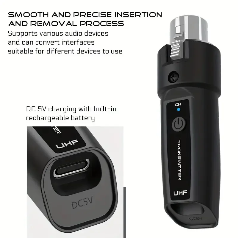 UHF 무선 마이크 시스템 XLR 송신기 수신기 (다이나믹 마이크, 기타, 오디오 믹서, PA 시스템용)