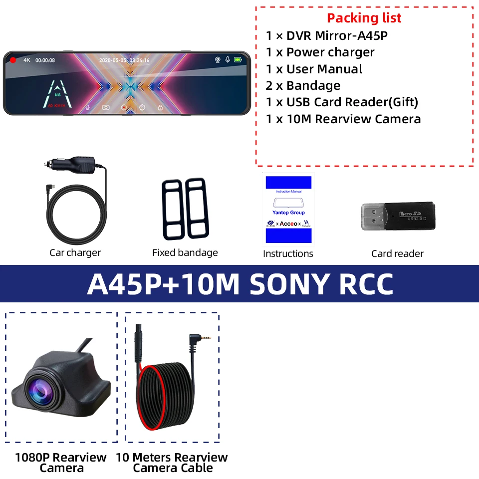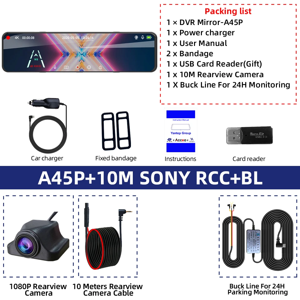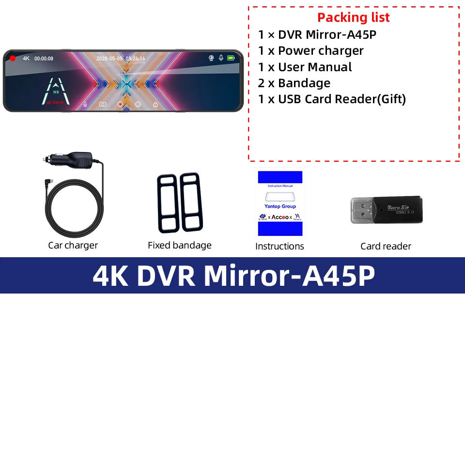 ● 기능 추가: 야간 투시,3840*2160P전면 카메라 1080P 후면 카메라