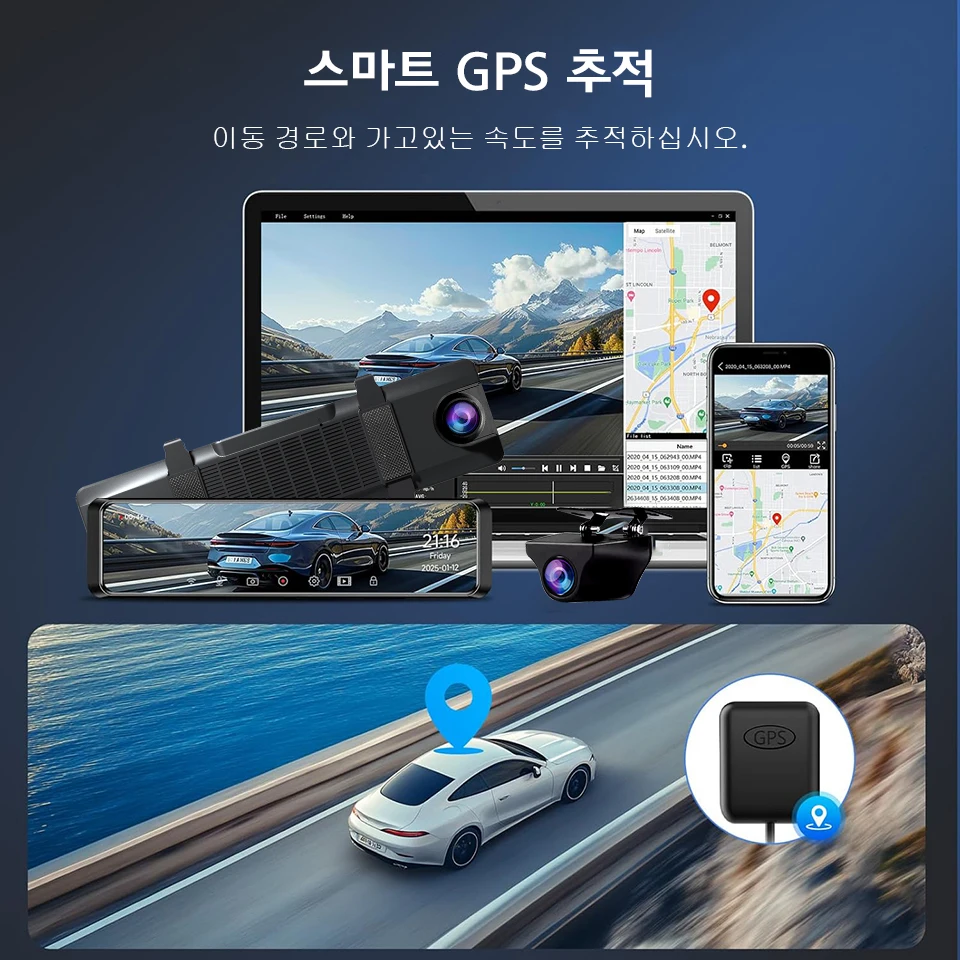 GPS 플레이어에 운전 경로, 위치, 속도를 쉽게 기록할 수 있습니다.(GPS를 사용하려면 GPS 모듈을 구입해야 합니다.)